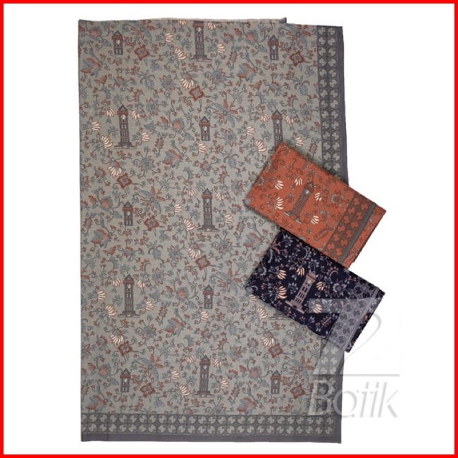 Bahan Batik Premium Katun Motif Jam Gadang Warna Hijau Grey Alam Sage Green Earthy Brown 724088 Cap 72 Jarik Jarit Sampi