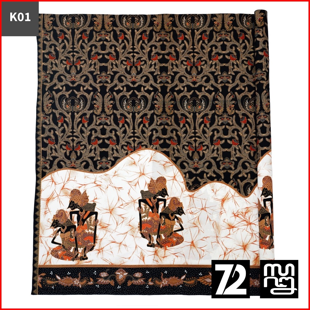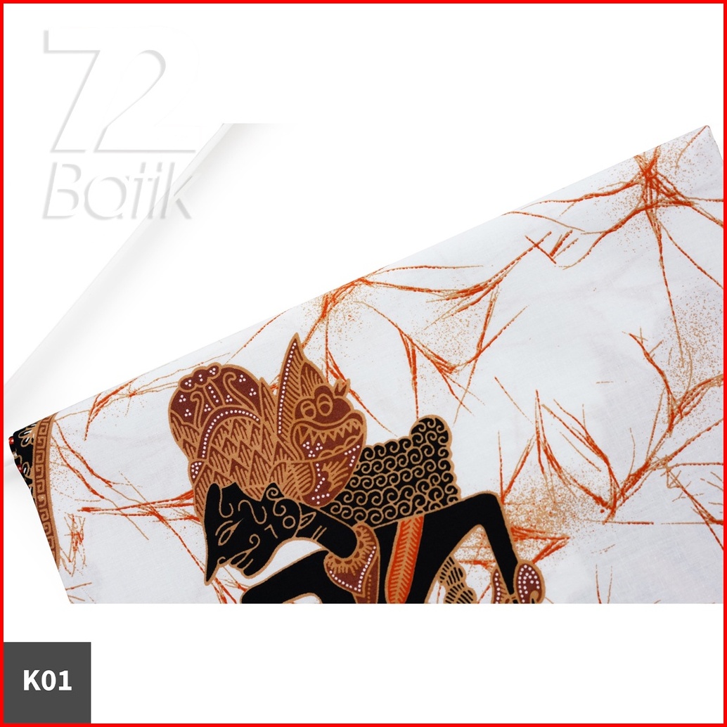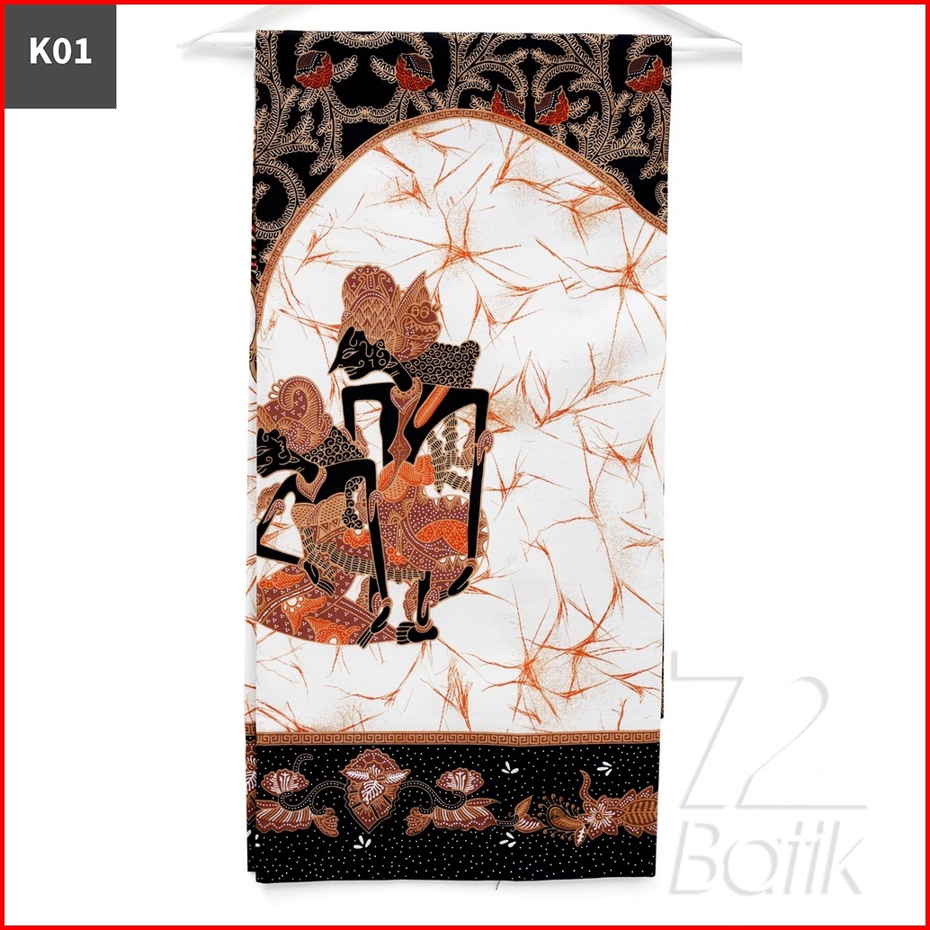 Kain Batik Premium Bahan Katun Motif Wayang Warna Putih 721460 Cap 72 Jarik Jarit Samping Kebat Panjang Batik Katun Mode