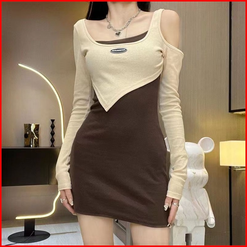 Cohan Dr906 Dr905 Dress Mini Bodycon Sexy Lengan Panjang Dan Pendek Korean Style Elegan Brown Black S M L Xl 2xl