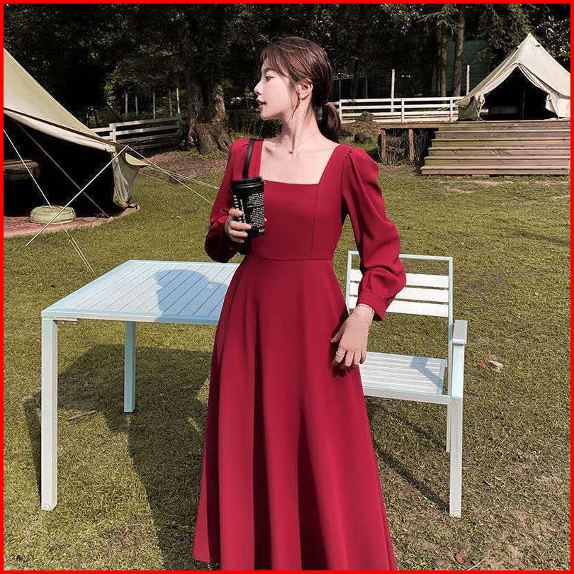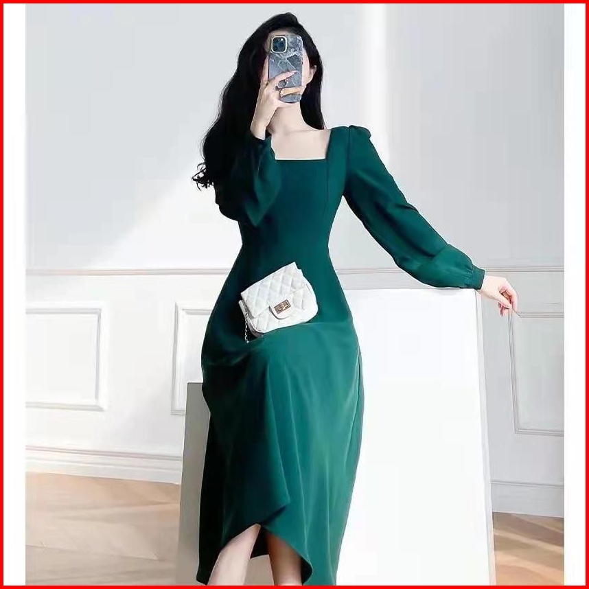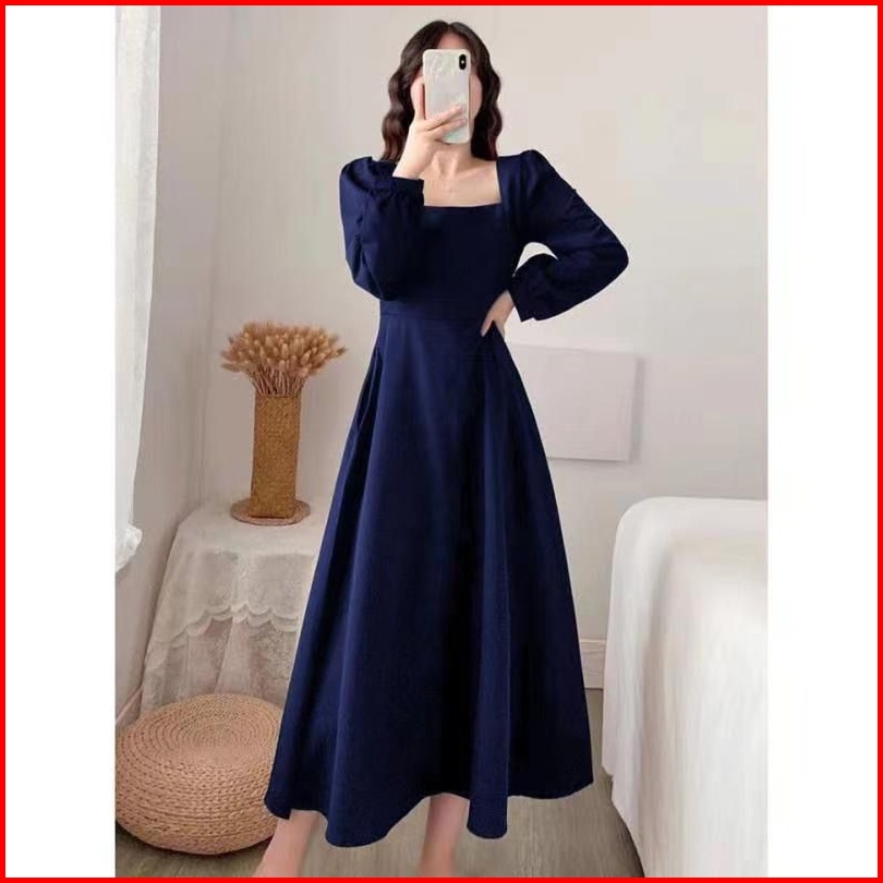 Zlore - Dr05 U Neck Dress Lengan Panjang Korean Party Dress Square Neck - 100 Import S-2xl