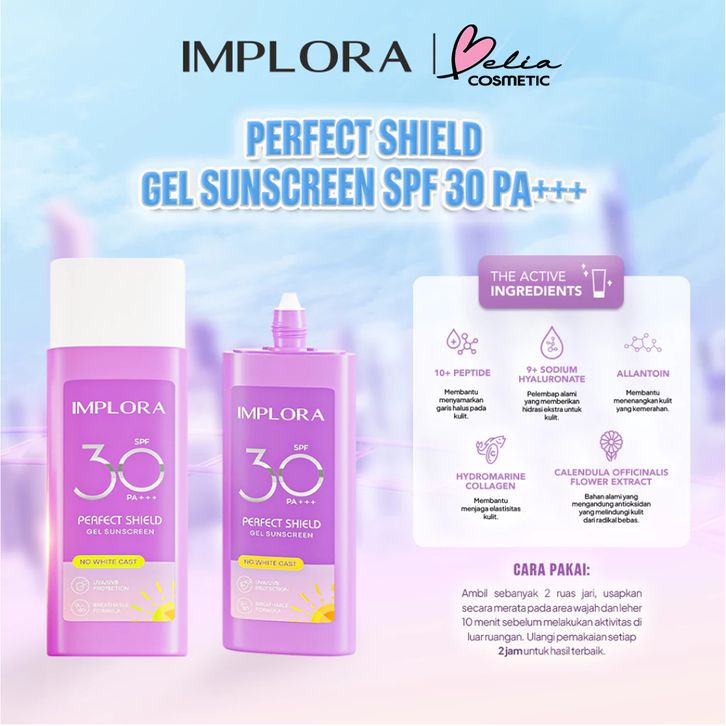 IMPLORA Perfect Shield Gel Sunscreen SPF 30 PA+++ | 50ml | Sun screen Tabir Surya UV Filter Pelindung dari Sinar Matahar