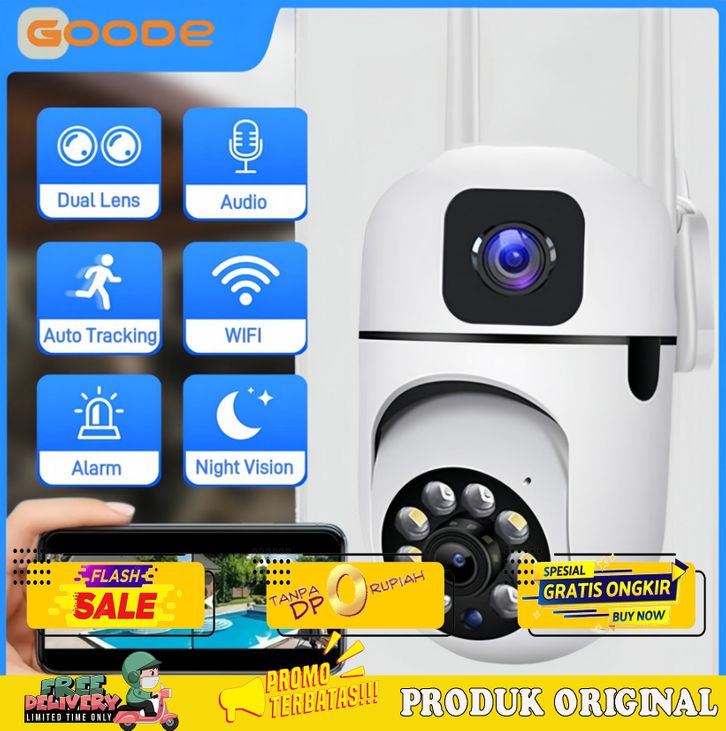 LARIS GOODE V380 PRO DUAL LENS JARAK JAUH LEWAT HP KAMERA PTZ PANORAMIC TANPA KABEL MOTION DETECT 1080P