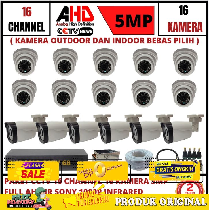LARIS PAKET CCTV DVR 16 CHANNEL 16 KAMERA 5MP FULL AHD 1080P IR SONY INFRARED AUDIO KOMPLIT SIAP PASANG