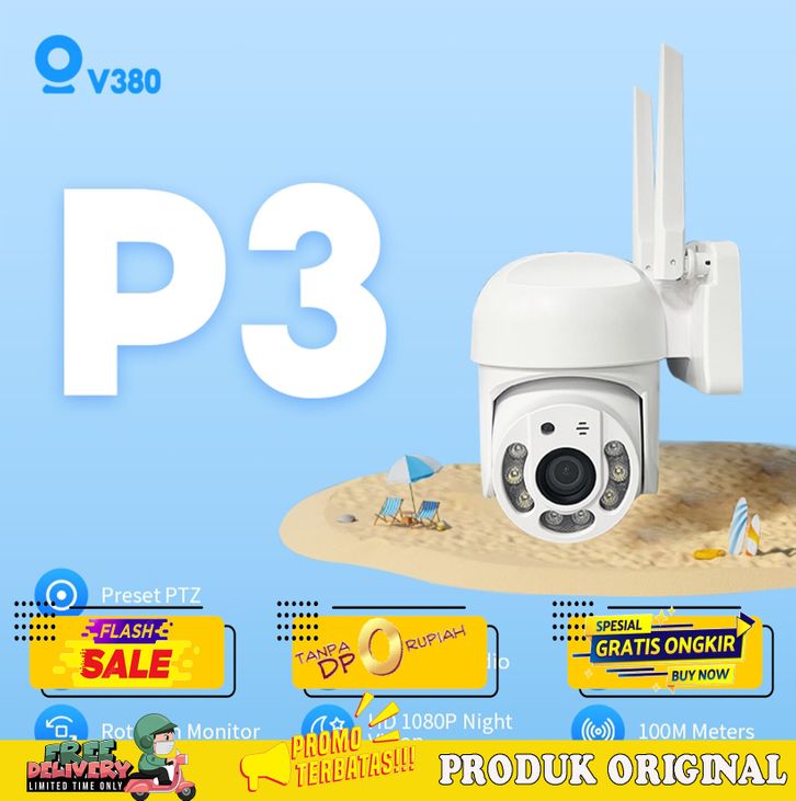 LARIS V380 CCTV P1/P3OUTDOOR TAHAN AIR PENGLIHATAN MALAM CCTV NIRKABEL CAMERA IP WIFI ALARM KAMERA KEAMANAN