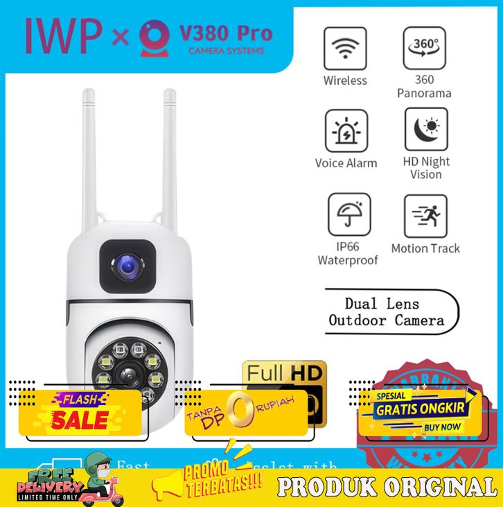 LARIS KAMERA CCTV LUAR RUANGAN Y33A V380 PRO KAMERA IP NIRKABEL LENSA GANDA PTZ PENGLIHATAN MALAM BERWARNA