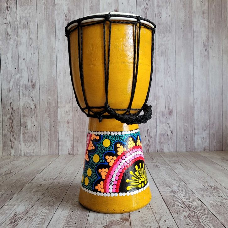 Laris KENDANG JIMBE 30CM KUNING PAINTING MAINAN GENDANG ANAK KECIL UKURAN MINI TERMURAH BERKUALITAS