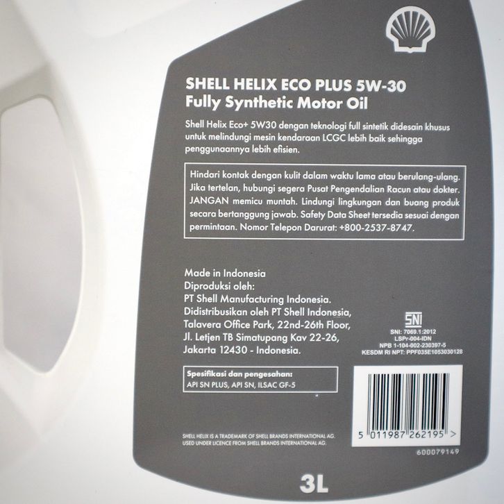 Oli Mobil Shell Helix Eco Plus SAE 5W-30 3 Liter Api SN Plus/GF-5 Oli Mobil LCGC Mesin Bensin Pelumas Full Synthetic Fu