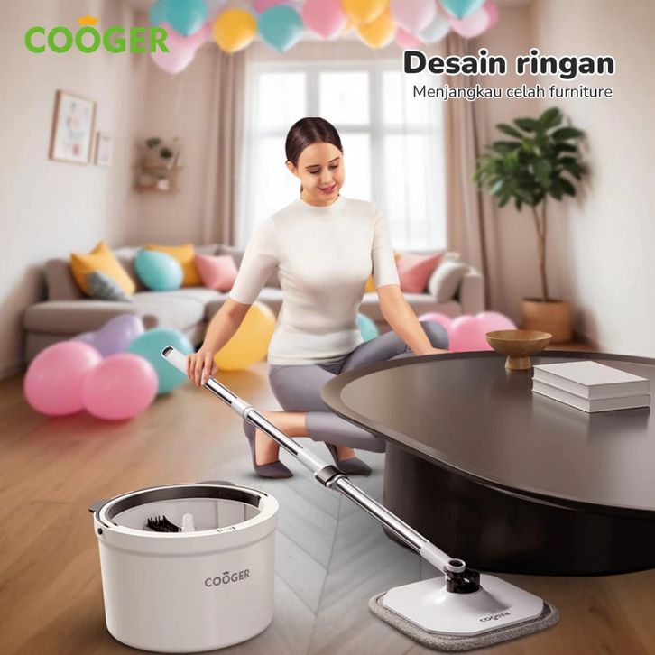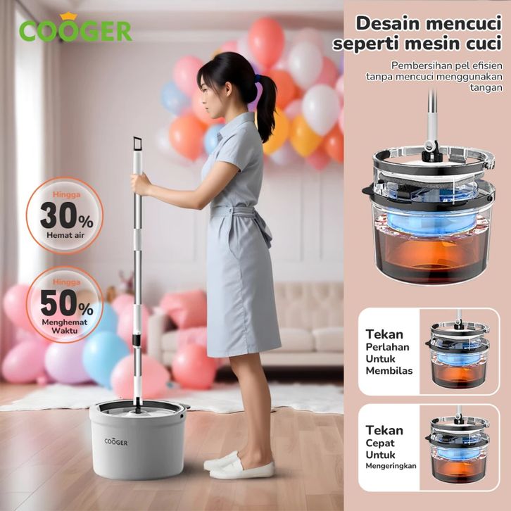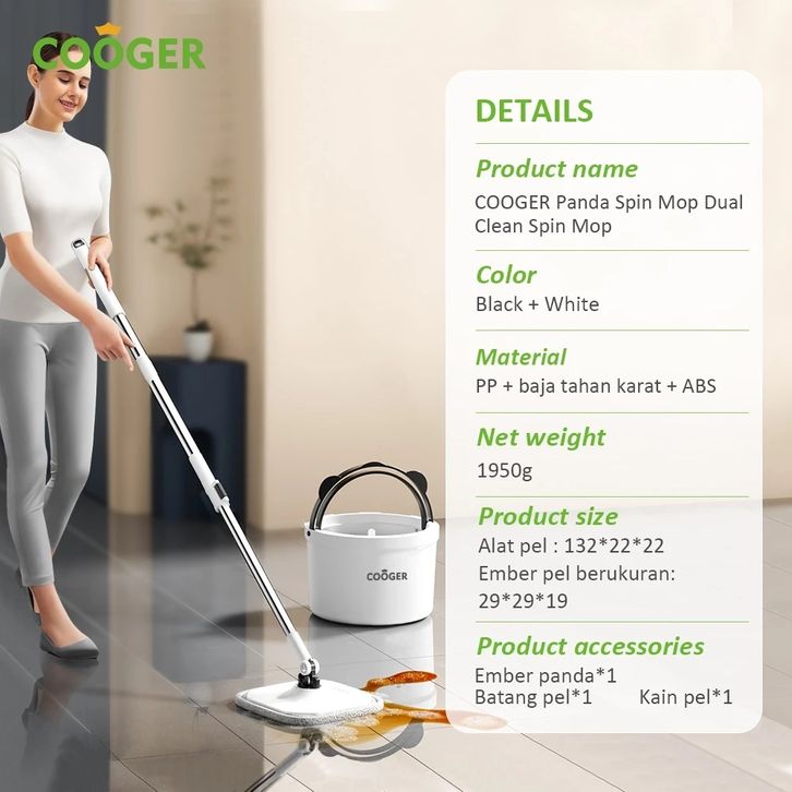 Alat Pel Lantai Panda Single Bucket Spin Mop 2in1, Teknologi Pemisah Air Kotor & Bersih COOGER