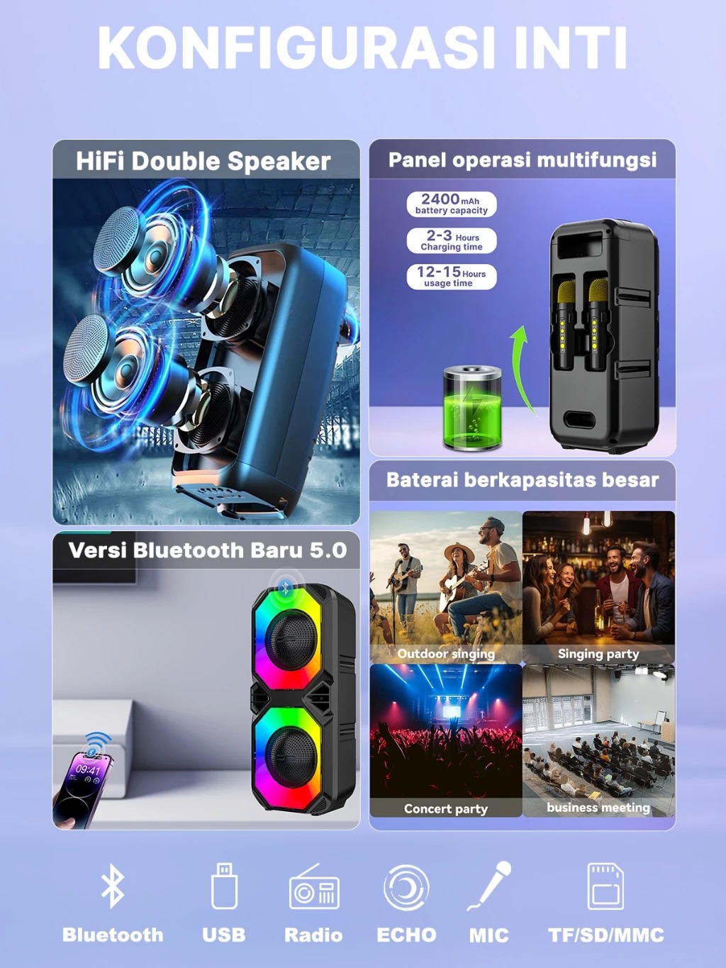[Star] MAIKET Speaker Bluetooth Karaoke 2 Mic Besar Super Bass 4 Inci Protable Wireless 4260