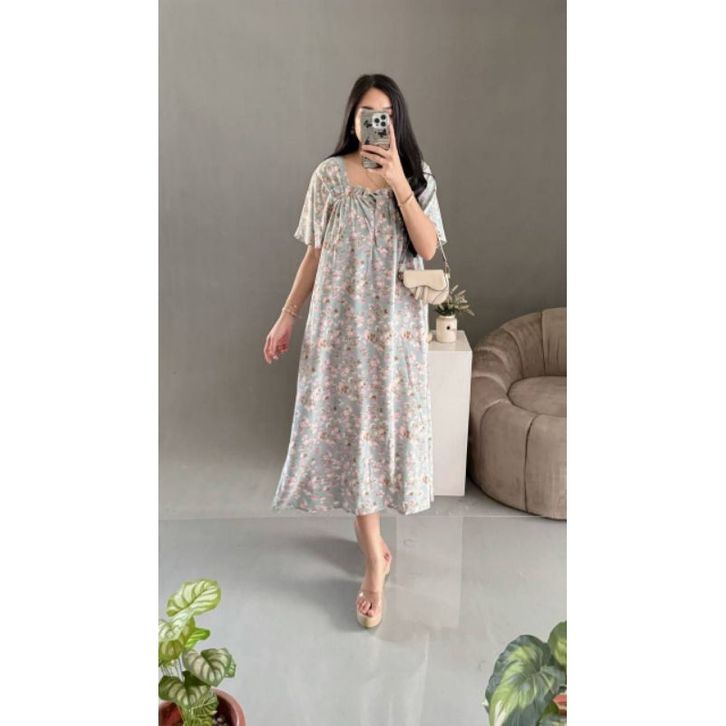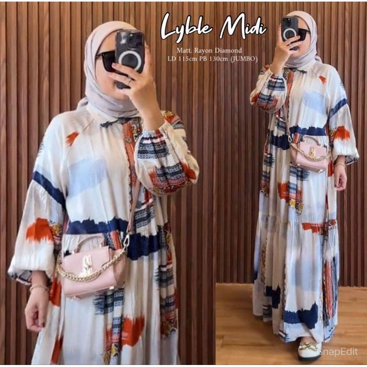 Midi Dress Kekinian Wanita Etnika Sky Midi Dress Rayon Diamond Dress Wanita Busui Friendly Gamis Wanita Muslimah