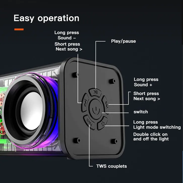 Mecha speaker bluetooth subwoofer meriam baja kecil transparan audio portabel nirkabel 10w