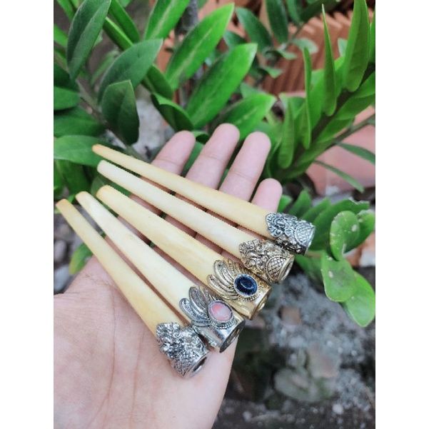 ONCE PIPA TULANG SAPI MIRIP GADING DILENGKAPI RING ALPAKAH MAHKOTA ELEGAN
