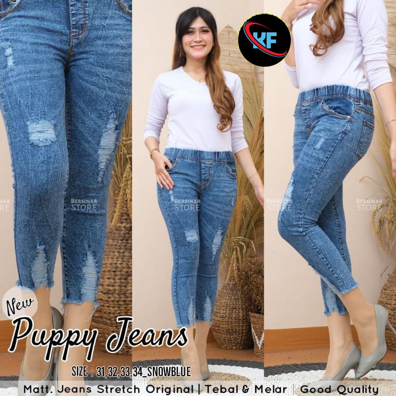 (Gratis Ongkir) (PUPPY / KHAYSA) SNOW PANTS 7/9 JEANS RIPPED LEGGING FULL KARET