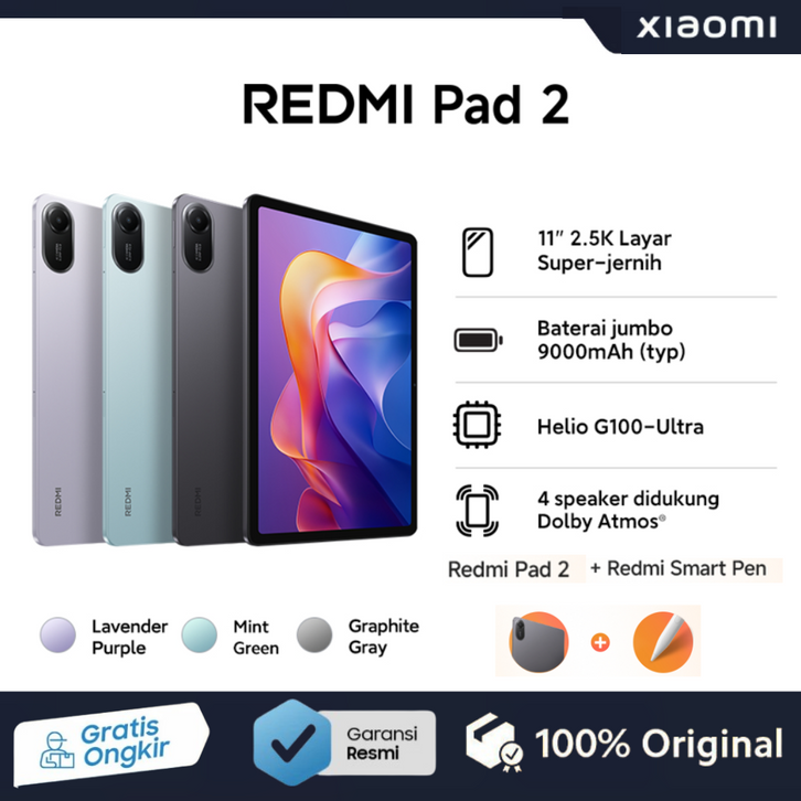 Xiaomi tablet pc murah anak Redmi Pad 2 (4/128G) | 11" 2.5 Layar Super-jernih | Baterai jumbo 9000mAh (typ) | Helio G10