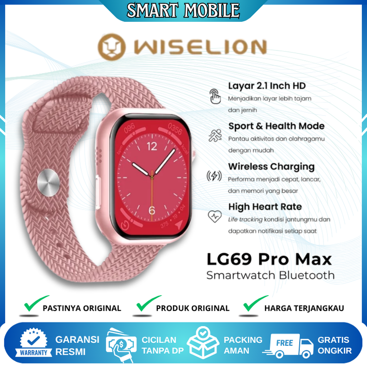 Smartwatch Wiselion LG69 Bluetooth Laki Laki Cewek Promax Nfc Sport & Health Hi-Fi Sound Music Gps