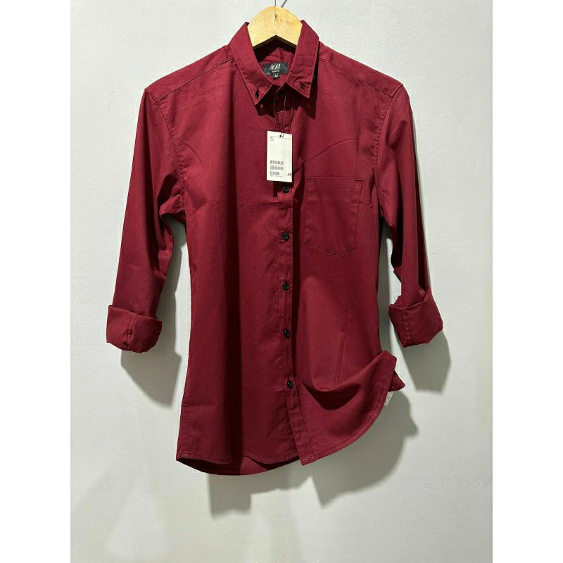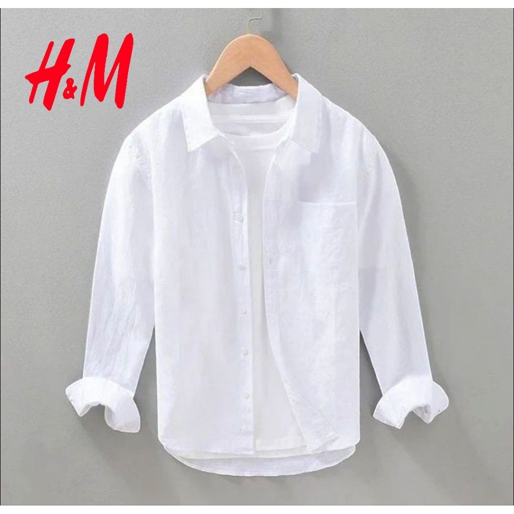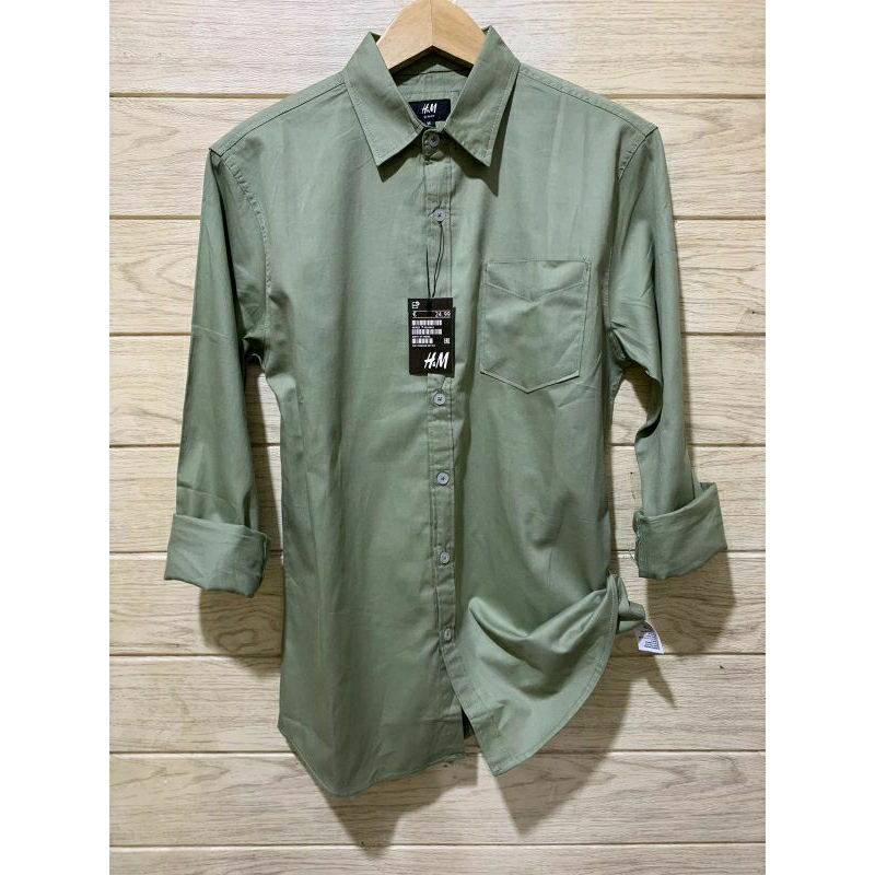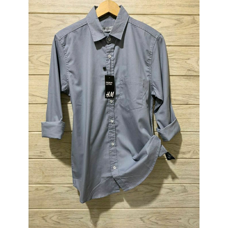 Kemeja H&m Pria Lengan Panjang Premium Slim Fit Kekinian Fashion Pria Trendi