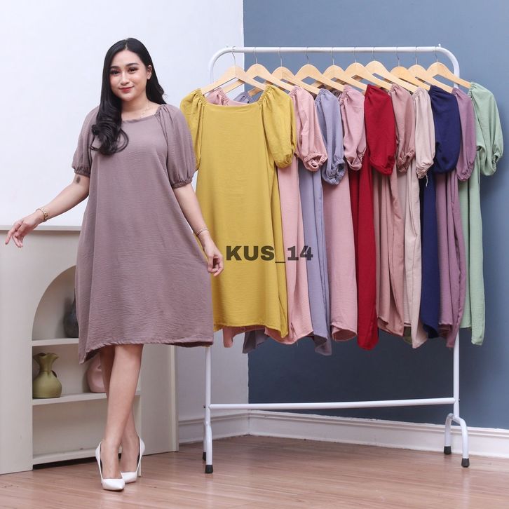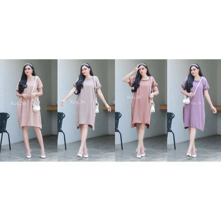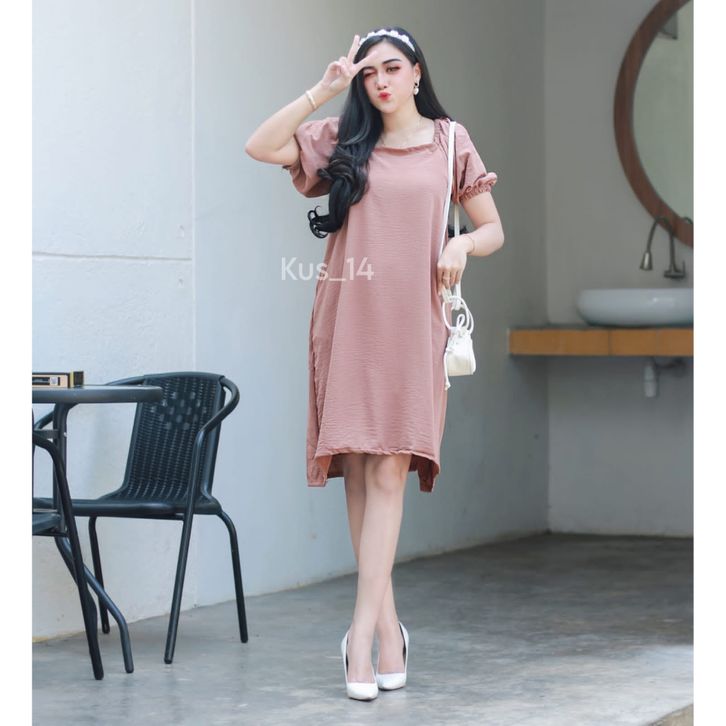 Midi Dress Kekinian Wanita Cringkle Airflow Dress Wanita Kasual Daster Wanita Selutut Baju Wanita Musim Panas