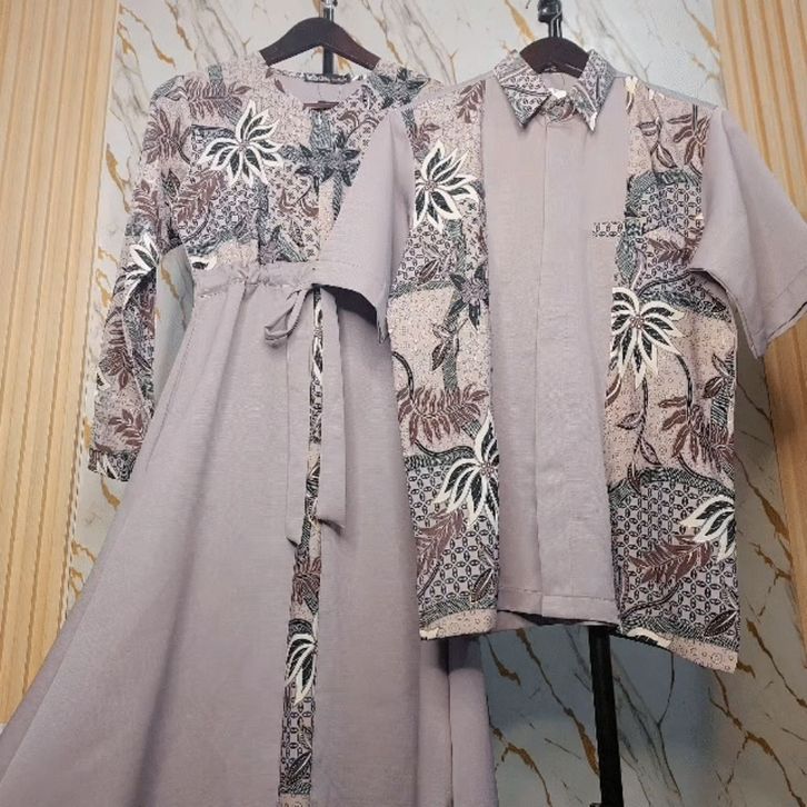 Baju Couple Pasangan Batik Gamis Muslim Atasan Tanpa Hijab Terbaru Kondangan Lebaran