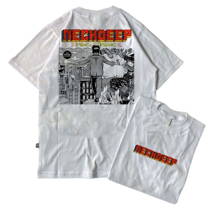 Kaos MUSIK BAND NECKDEEP PEACE AND PANIC PUTIH 24s kaos pria/wanita free ongkir
