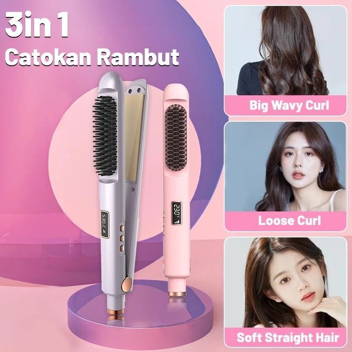KUCUU Catokan Rambut catokan curly catok 3 in 1 Hair Straightener Pelurus / Pengeriting / Sisir catokan curly catok Tamp