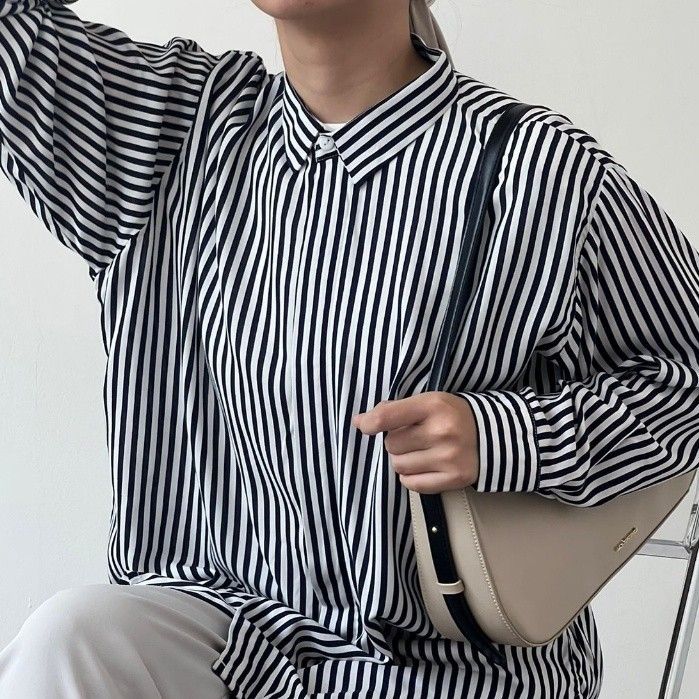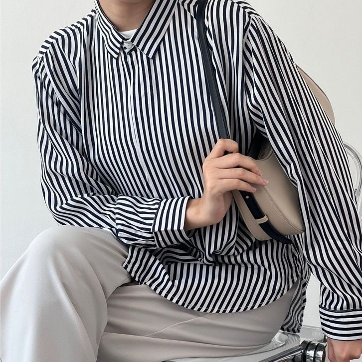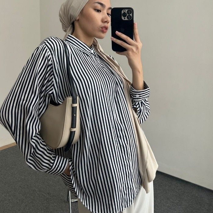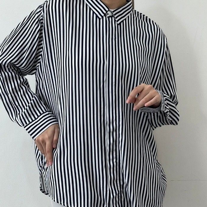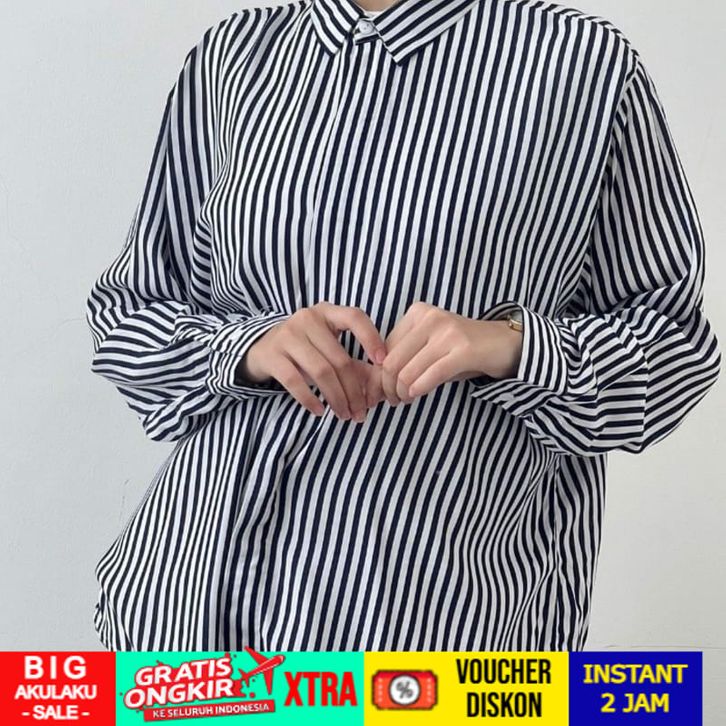TERLARIS BWBYAZ - Pattern Oversized Shirt | STRIPES ROYAL NAVY (READY STOCK)
