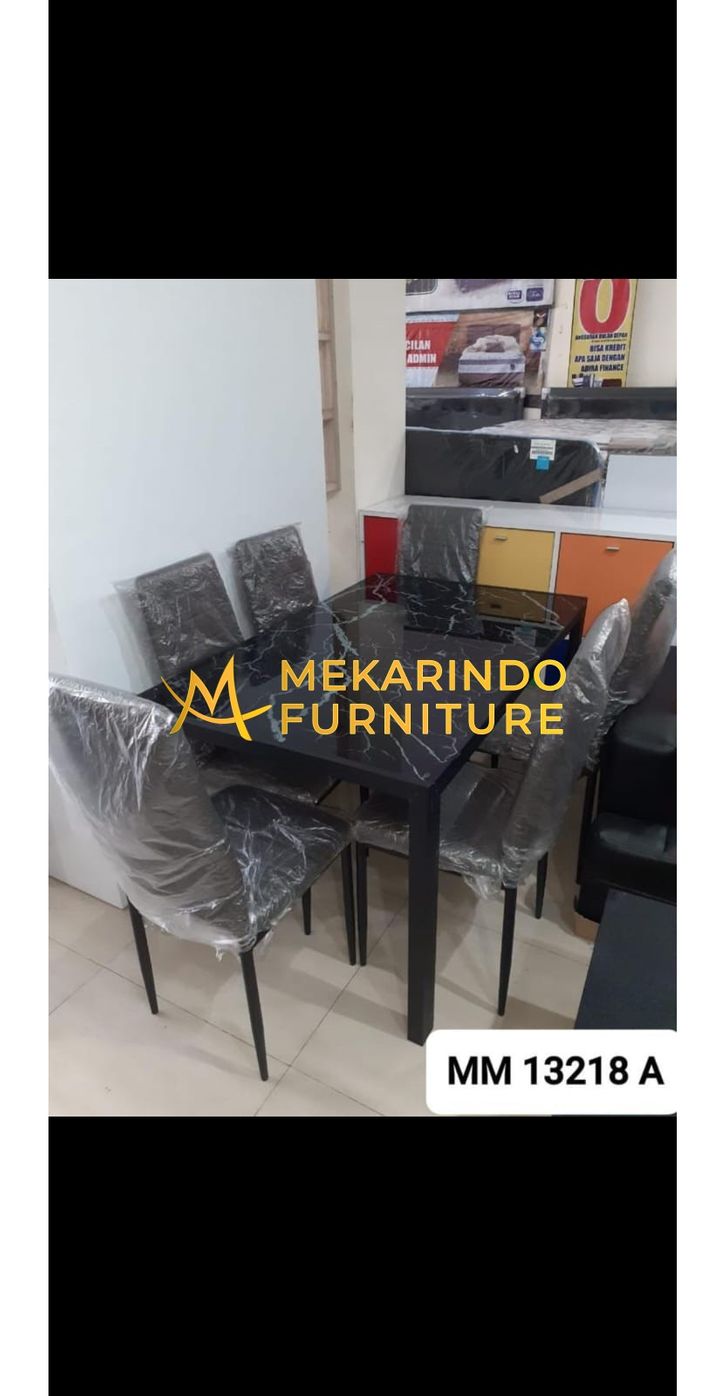 Meja Makan Kaca Marmer MM 13218 6 Kursi