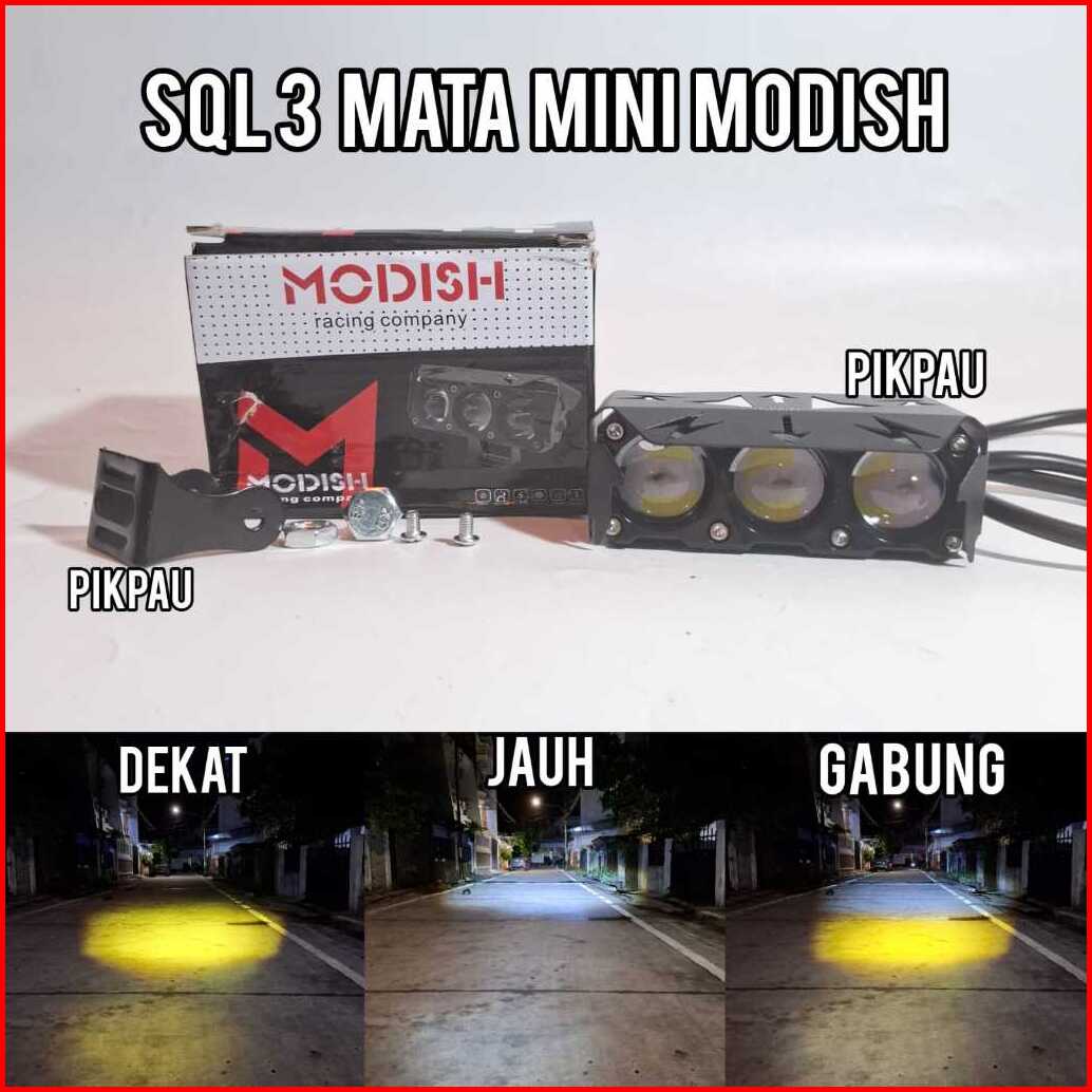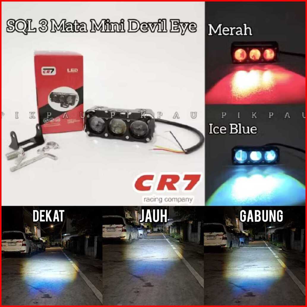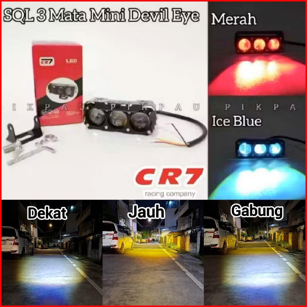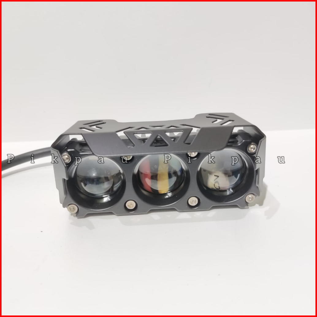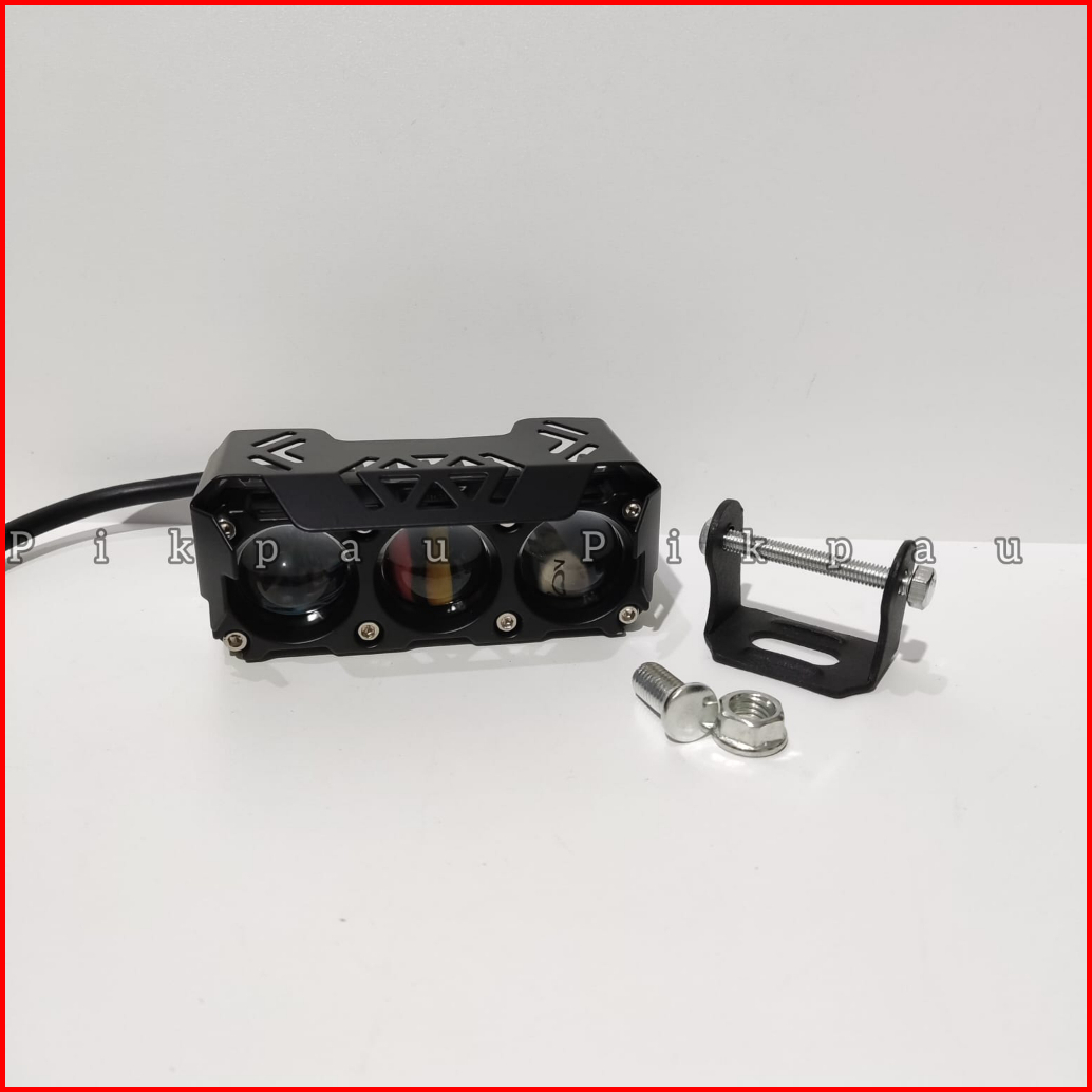 Lampu Tembak Mini Laser 3 Mata Devil Eye Super Terang Full Aluminium Putih Kuning