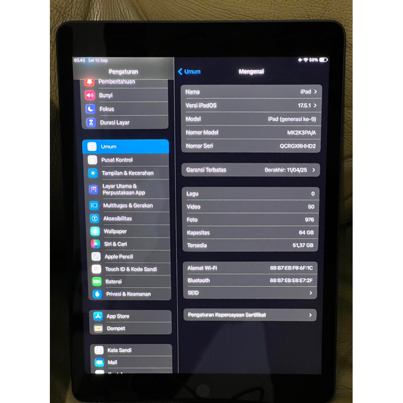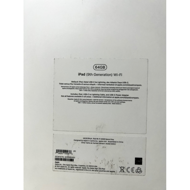 IPAD GEN 9 NEW GARANSI IBOX ON SAMPAI 11 APRIL 2025 64GB WIFI TABLET SECOND PRELOVED NO MINUS 13 14 15 PRO MAX