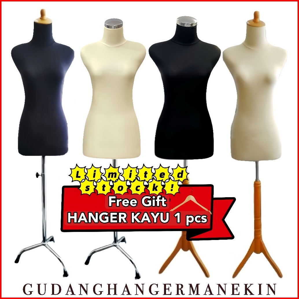 Manekin Wanita Lapis Kain Lapis Busa Dressmaker Kaki Kayu Kaki Besi - Patung Baju Dm Set Tiang Mannequin