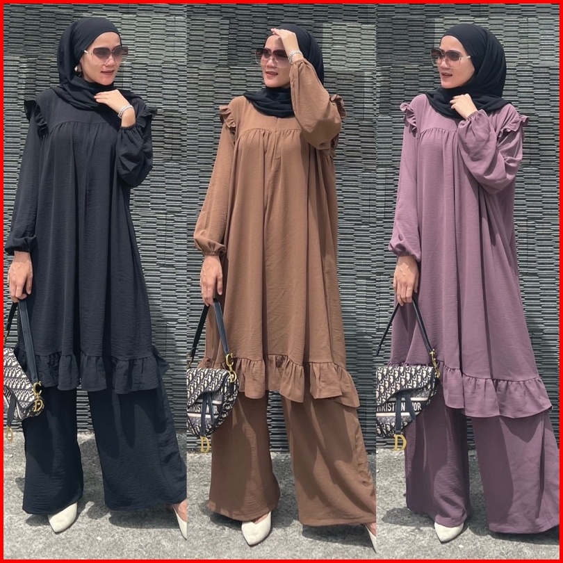 Velisa Set Tunik Wanita Size Xl Xxl Bahan Crinkle Airflow Premium