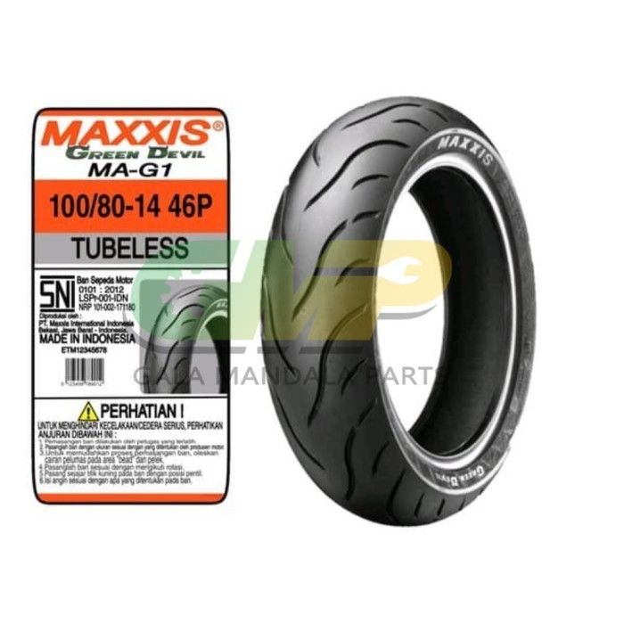 Maxxis MAG1 Green Devil Ban Luar Tubeless Motor Matic 80/90/100 Ring14 - 80/80 ban maxxis victra ring 14