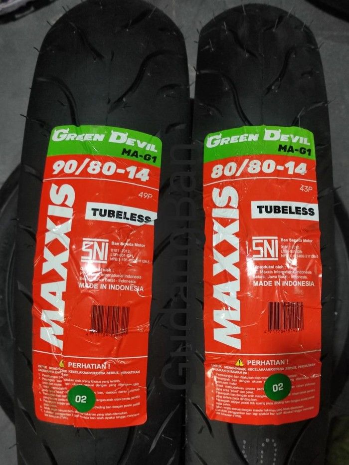 Paket Ban Maxxis Green Devil UK 80 / 80 - 14 dan 90 / 80 -14 ban maxxis victra ring 14