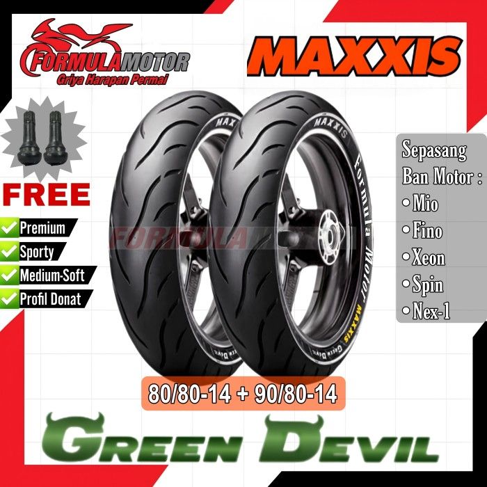 80/80-14 & 90/80-14 Maxxis Green Devil MA-G1 Sepasang Ban Motor Ring14 - +P Karet ban maxxis victra ring 14