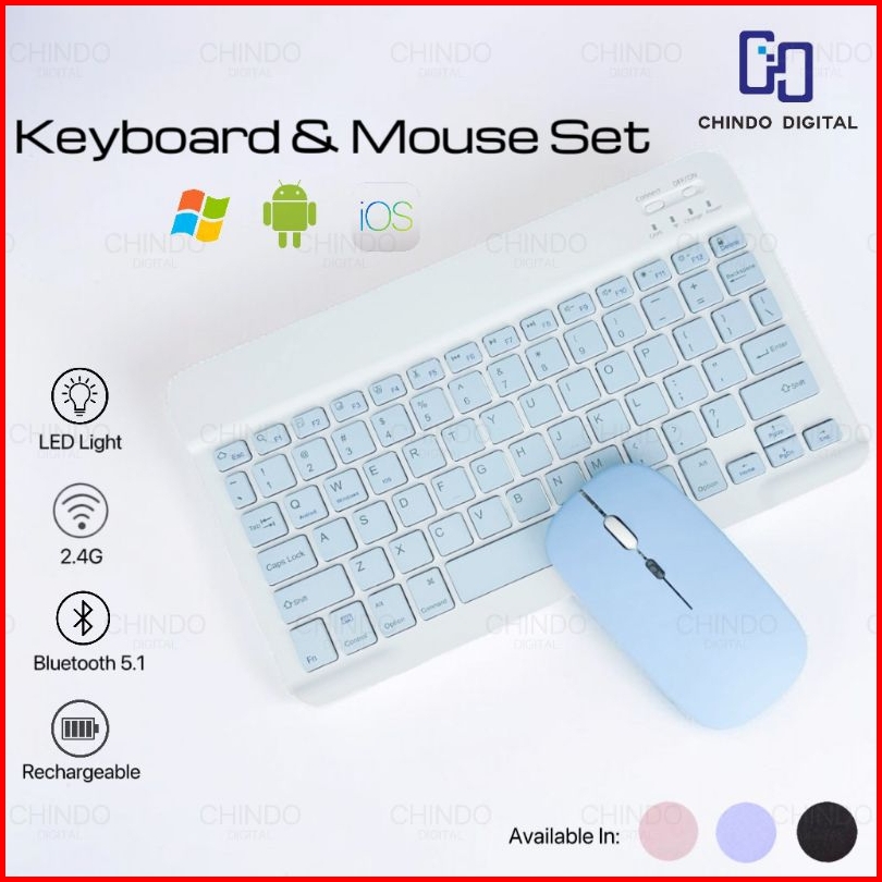 Cid 3in1 Macaron 10 Inch Wireless Bluetooth Keyboard Mouse Set Lightweight Portable Colorful