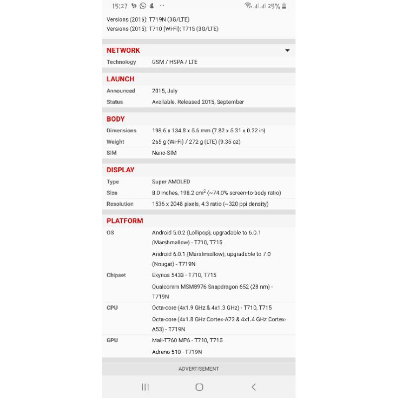 SAMSUNG TAB S2 8INCH T715Y 3/32GB SECOND BERKUALITAS