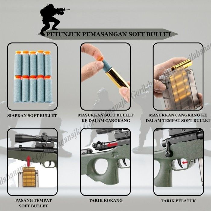 Mainan Tembakan Anak Pistoll mainan AWM Sniper Nerf Soft Bullet Terbaru Untuk Hadiah Anak 3 4 5 6 7 Tahun