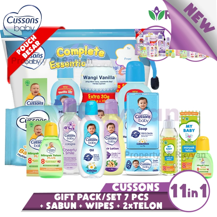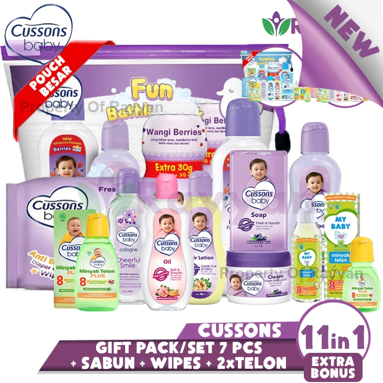 Cussons Baby Set Pack 11in1 | Fun Bathing/Complete Essential |Plus Telon| Cussons Baby Gift Set Large Biru/Pink/Ungu