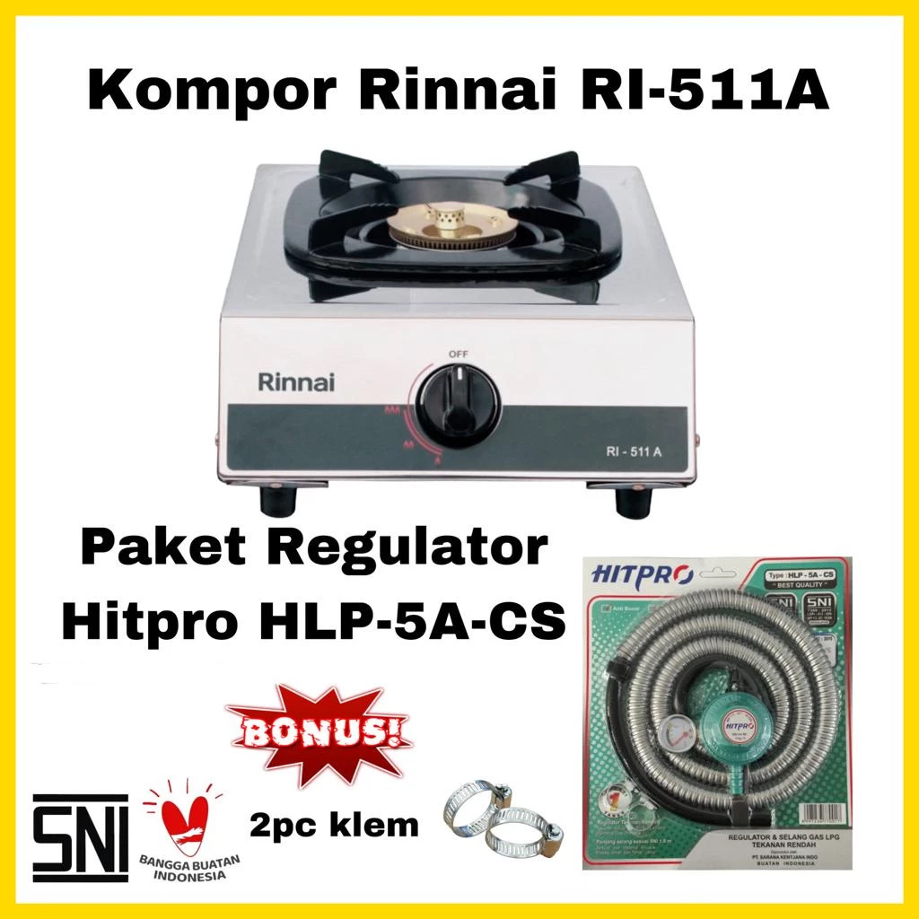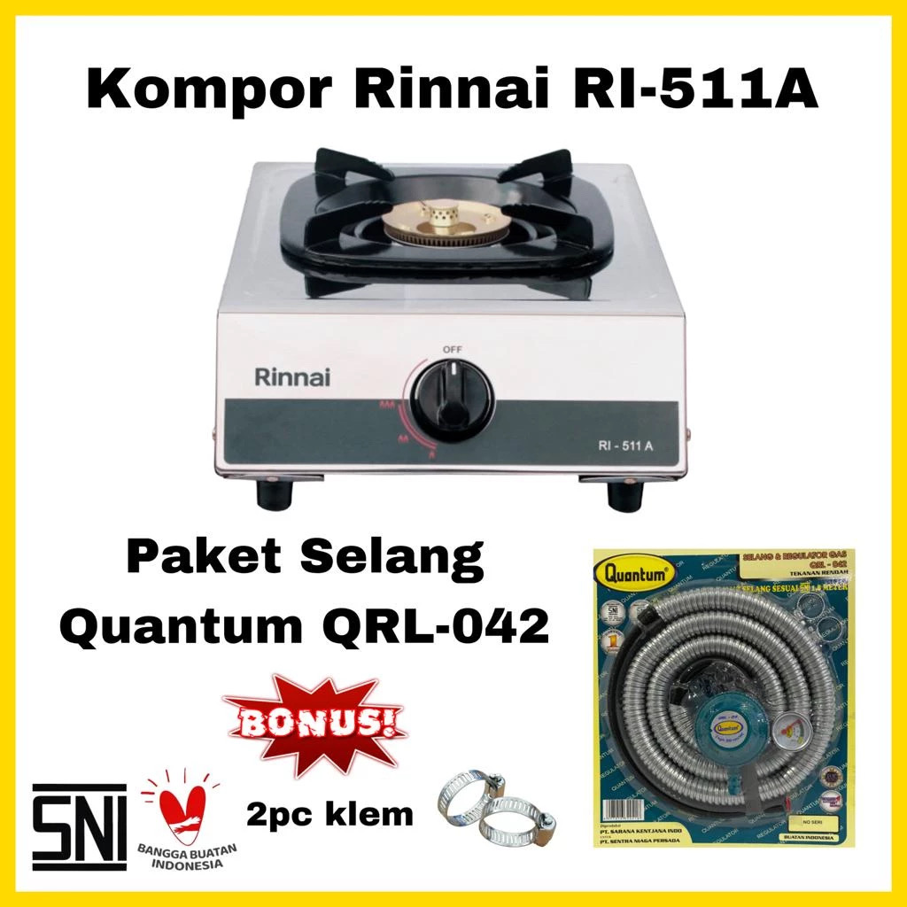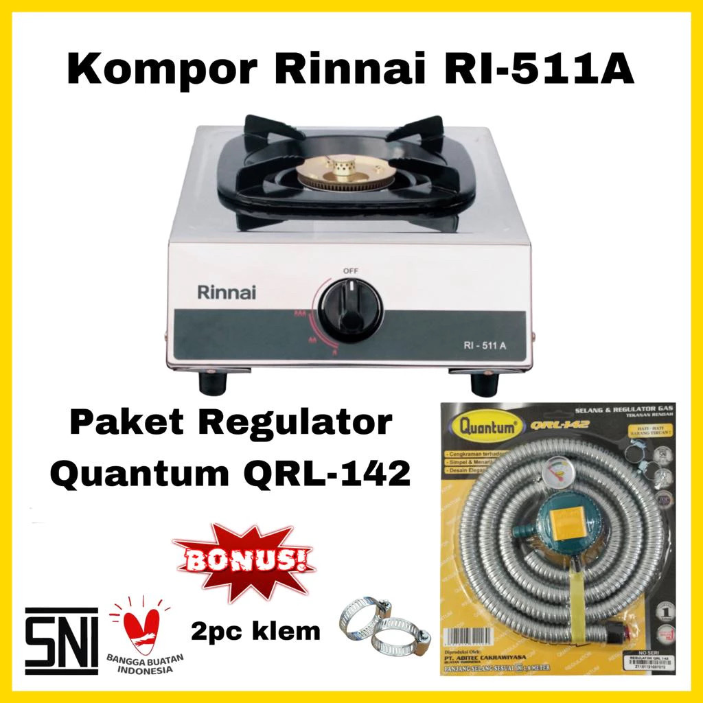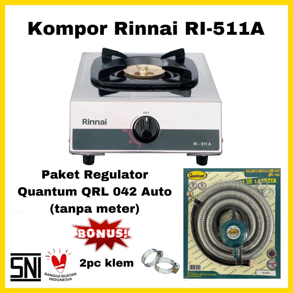 Paket Kompor Gas Rinnai 1 Tungku RI-511A Bonus Selang Regulator Quantum / Hitpro Rinnai RI-511A Api Besar