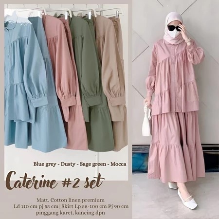 Outfit - Caterine Set 2in1 Setelan Rok Wanita Muslim Remaja Linen Rami Premium Kekinian Terbaru