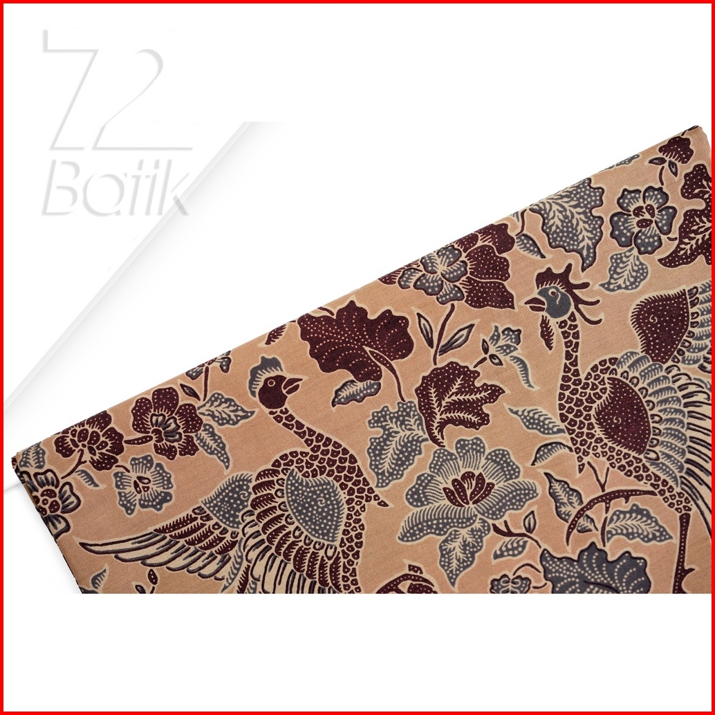 Kain Batik Premium Bahan Katun Motif Cendrawasih Warna Cream Earthy Brown Silver 722230 Cap 72 Jarik Jarit Samping Kebat