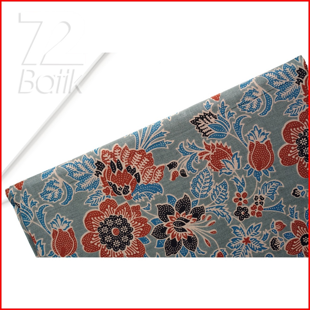 Kain Batik Premium Bahan Katun Motif Kembang Warna Abu Grey Gray 721192 Cap 72 Jarik Jarit Samping Kebat Panjang Batik K