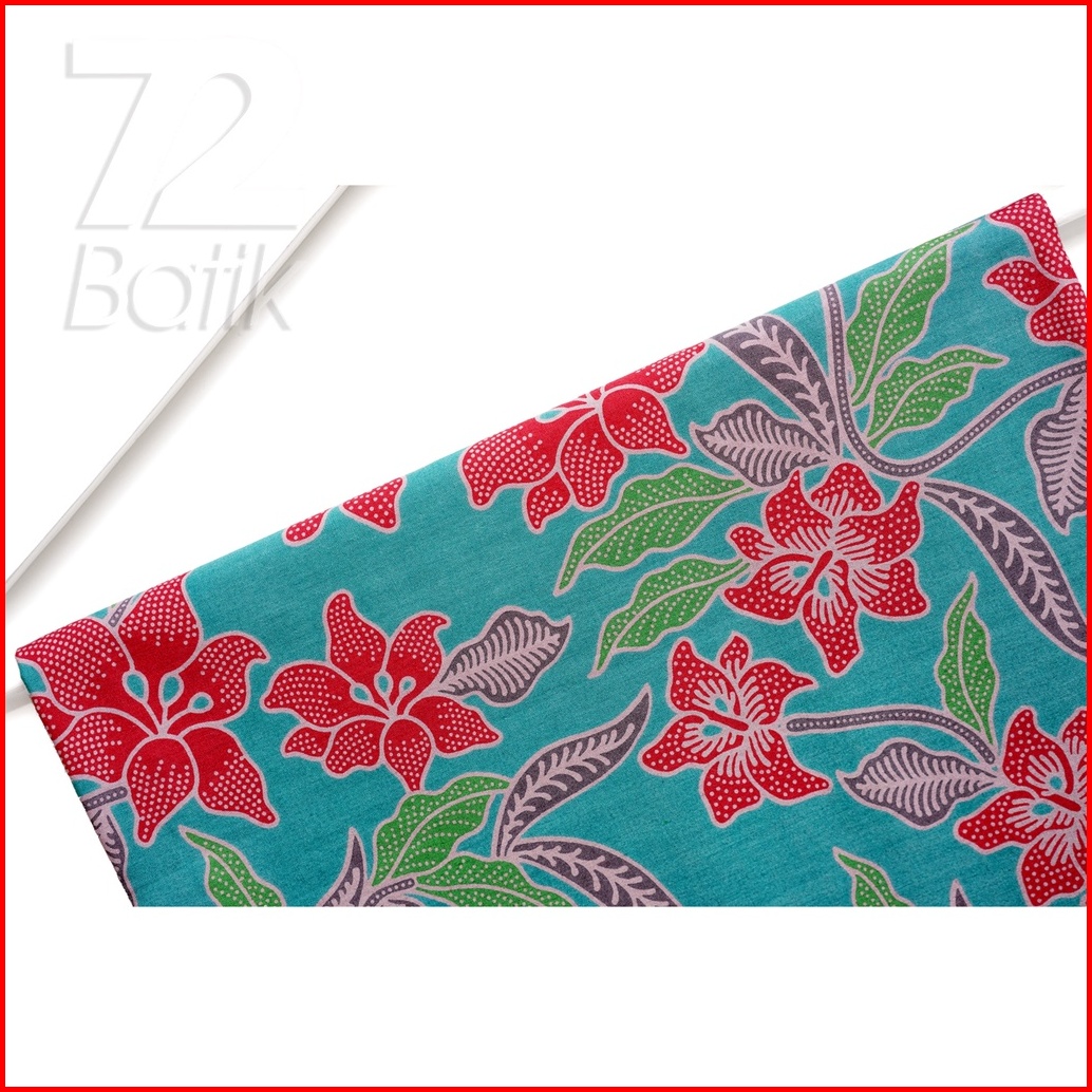 Kain Batik Katun Premium Motif Sekar Sari Warna Biru Muda Nila Hijau Burgundy Muda 726267 Cap 72 Jarik Jarit Samping Keb