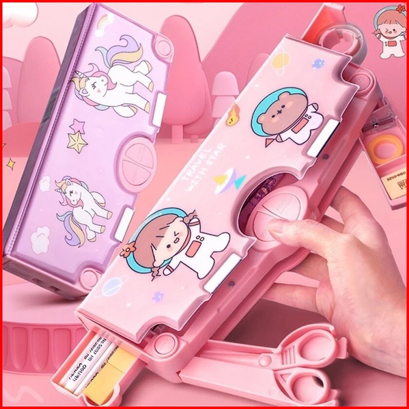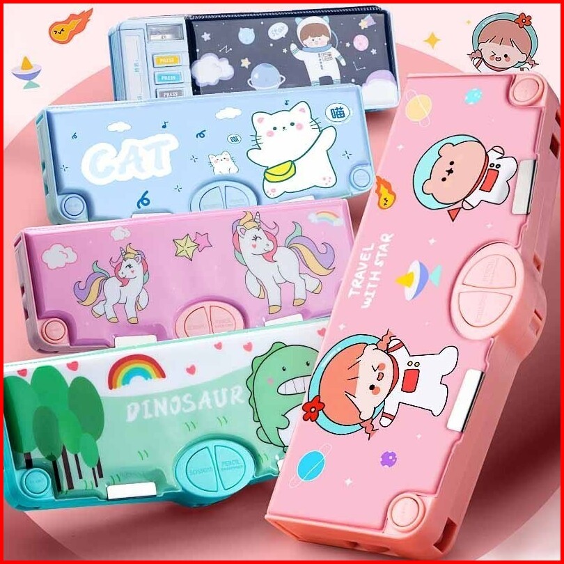Pengiriman Cepat Kotak Alat Tulis Pola Lucu Kotak Pensil Kapasitas Besar Kotak Alat Tulis Multifungsi Dengan Gunting Sel