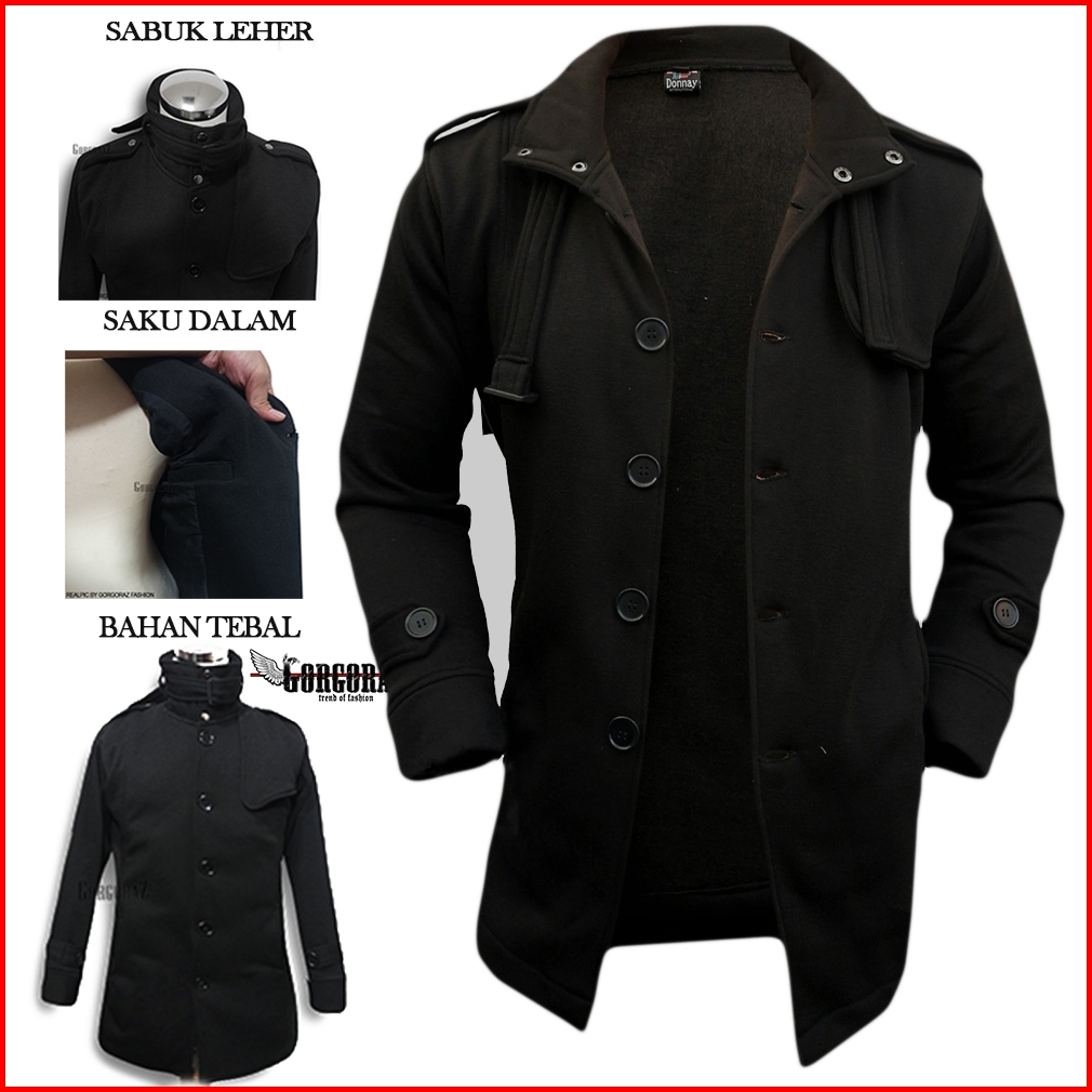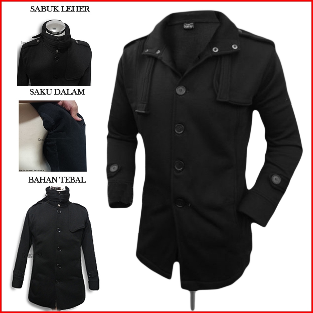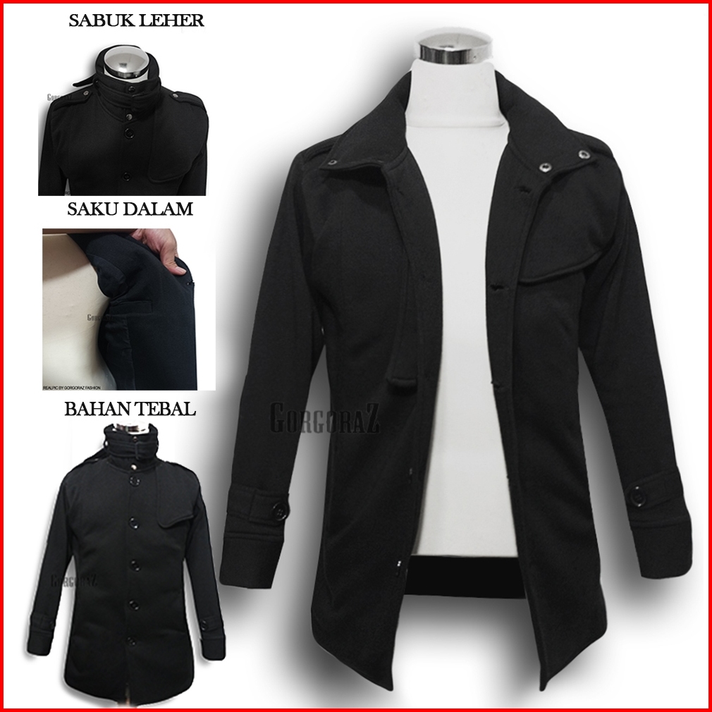 Jaket Coat Pria Hitam Model Korea Jepang Jaket Panjang Pria Polos