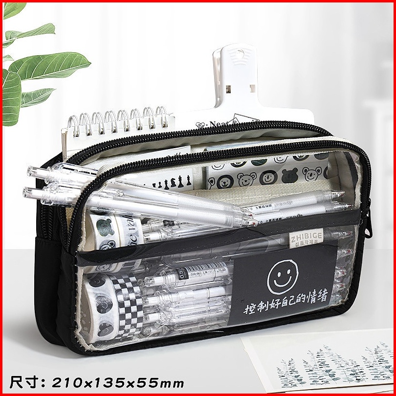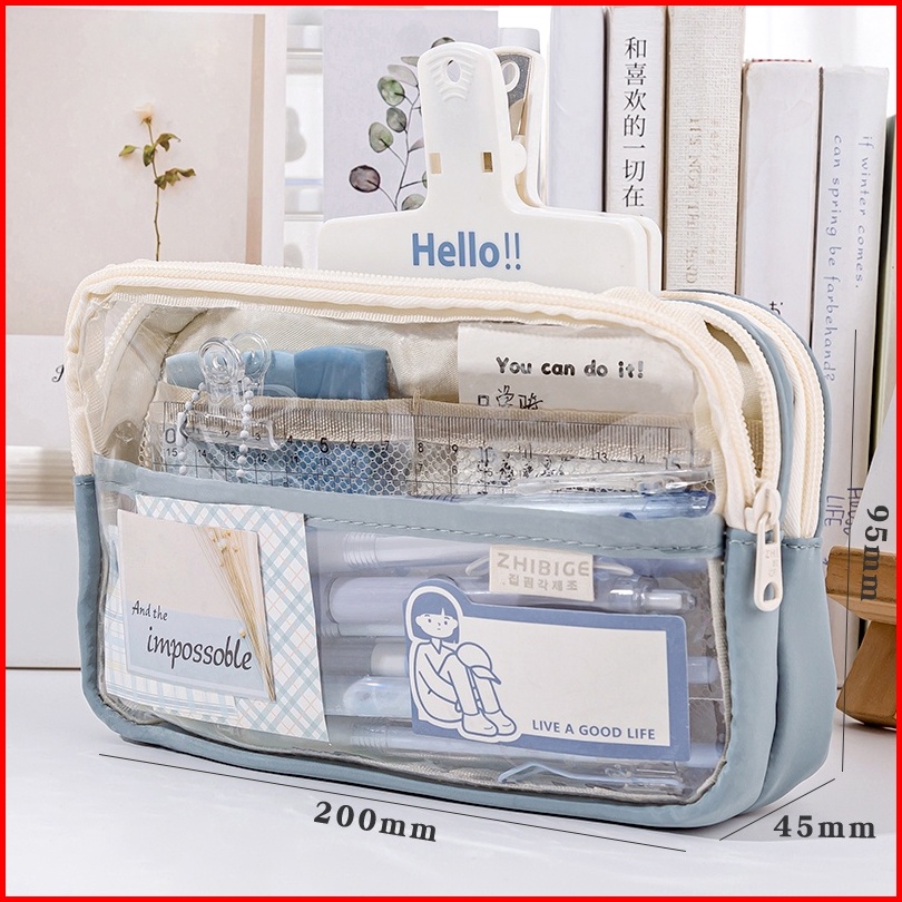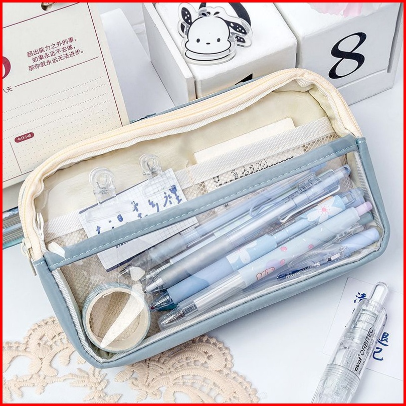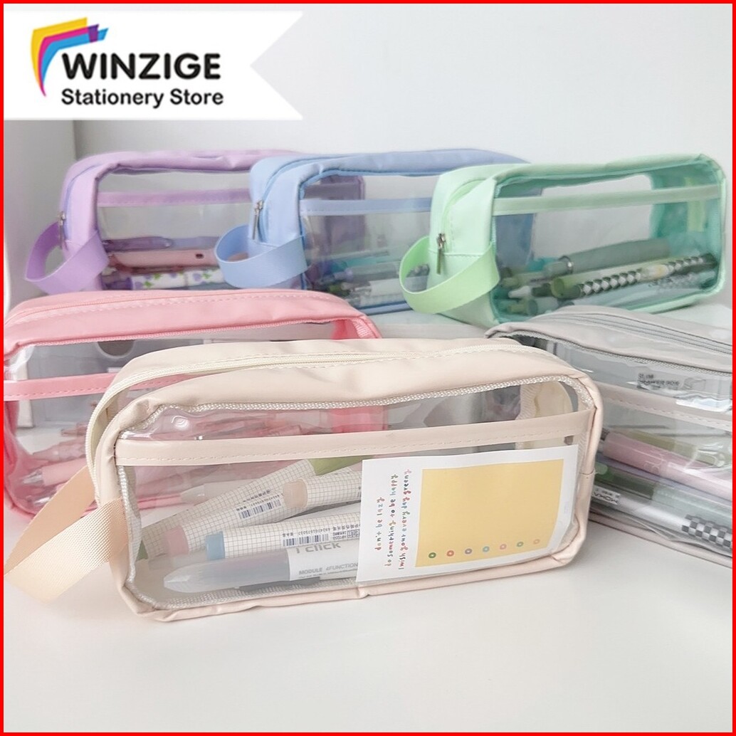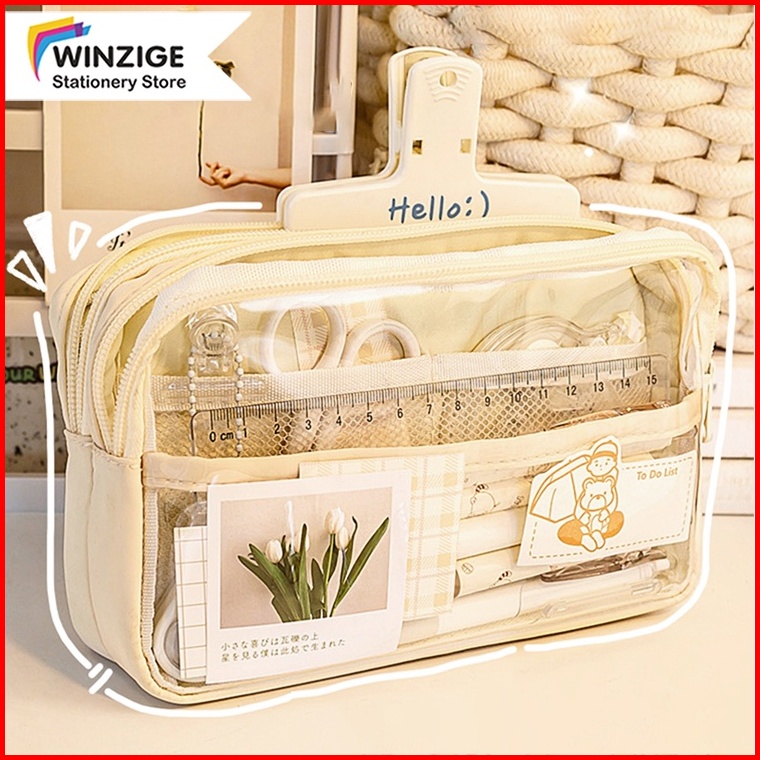 Winzige Kotak Pensil Transparan Aesthetic Pencil Case Large Tempat Pensil Pen Pouch Lucu Stationery Organizer