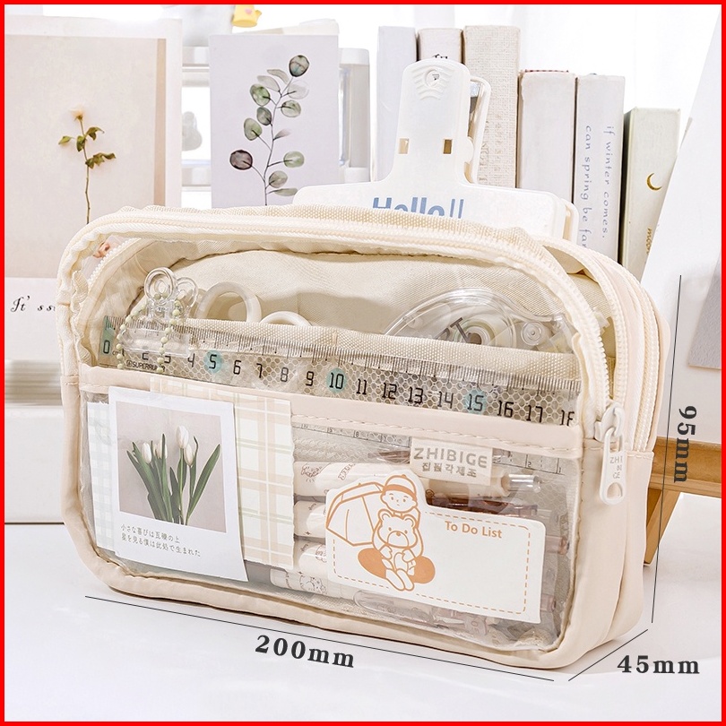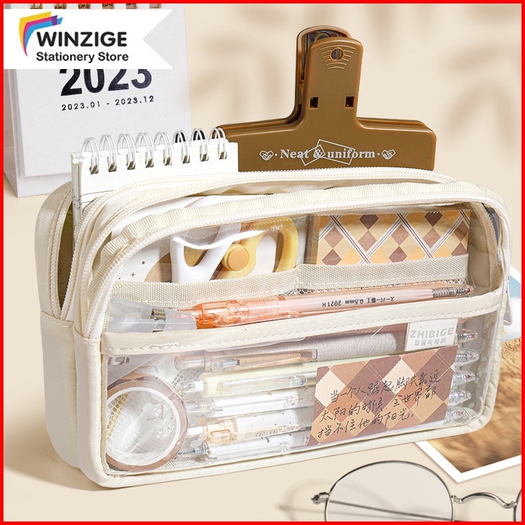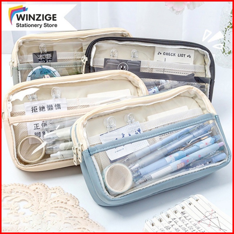 Winzige Pencil Case Large Tempat Pensil Transparan Kotak Pensil Aesthetic Pen Pouch Lucu Stationery Organizer