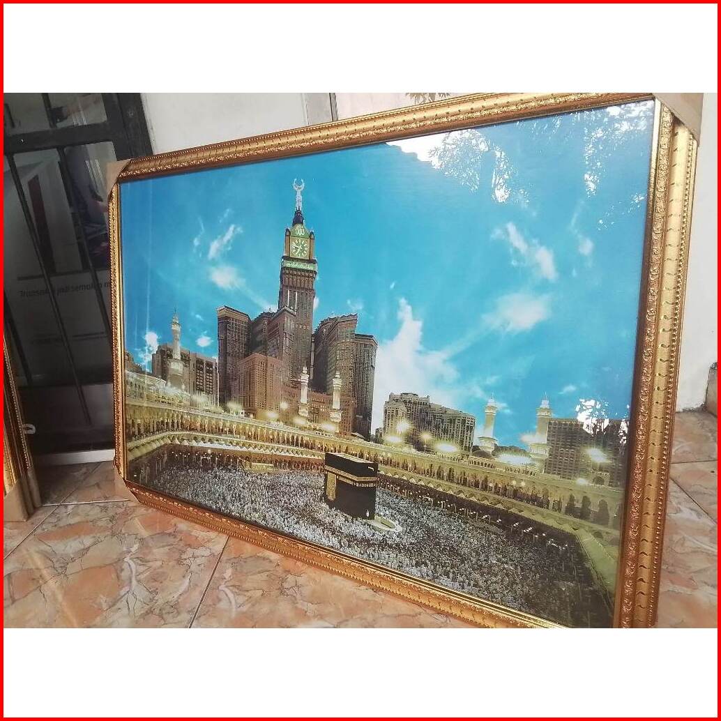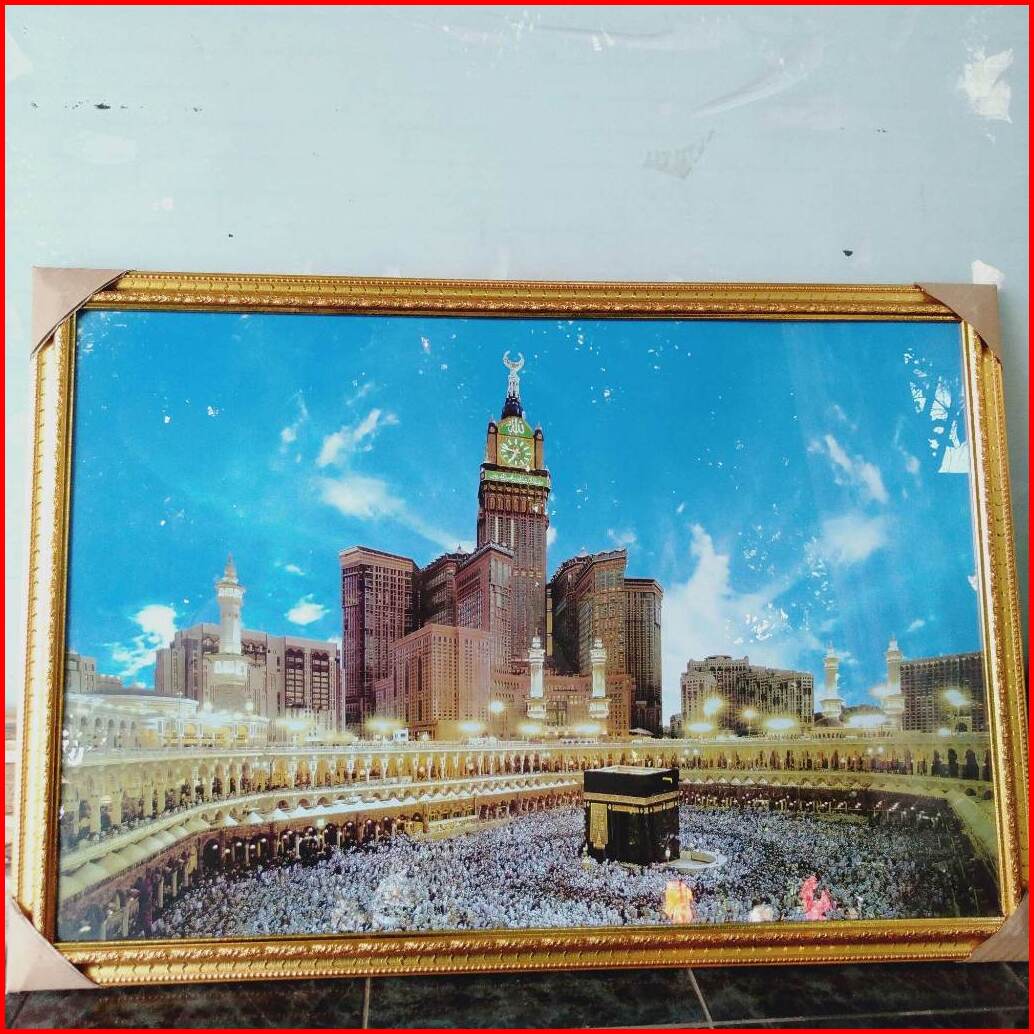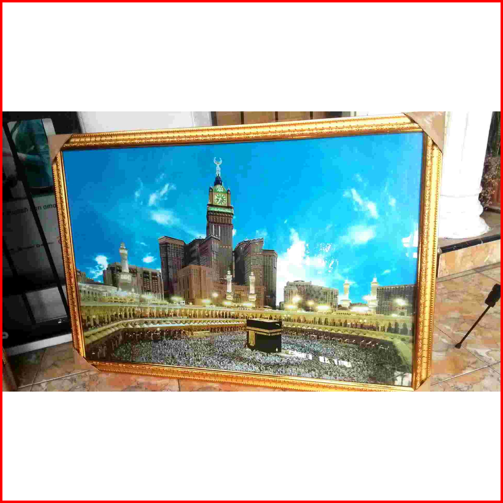 Hiasan Dinding Kaligrafi Ka Bah Kota Mekkah Besar 100x70cm Pajangan Ruang Tamu Gambar Kabah Jumbo