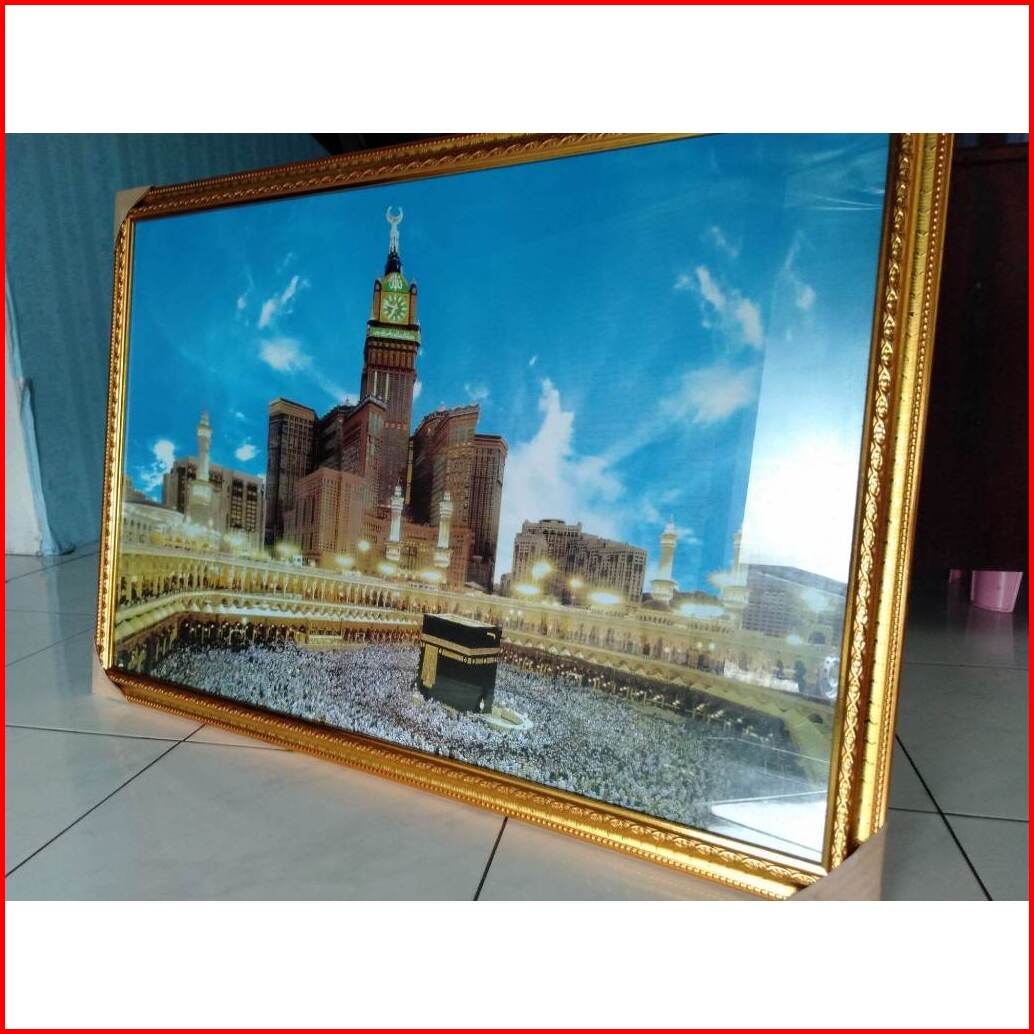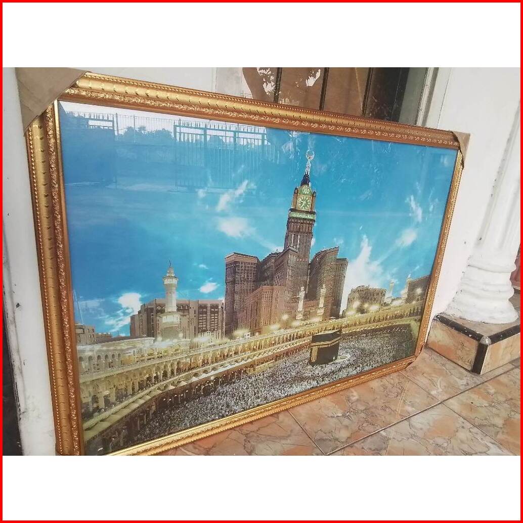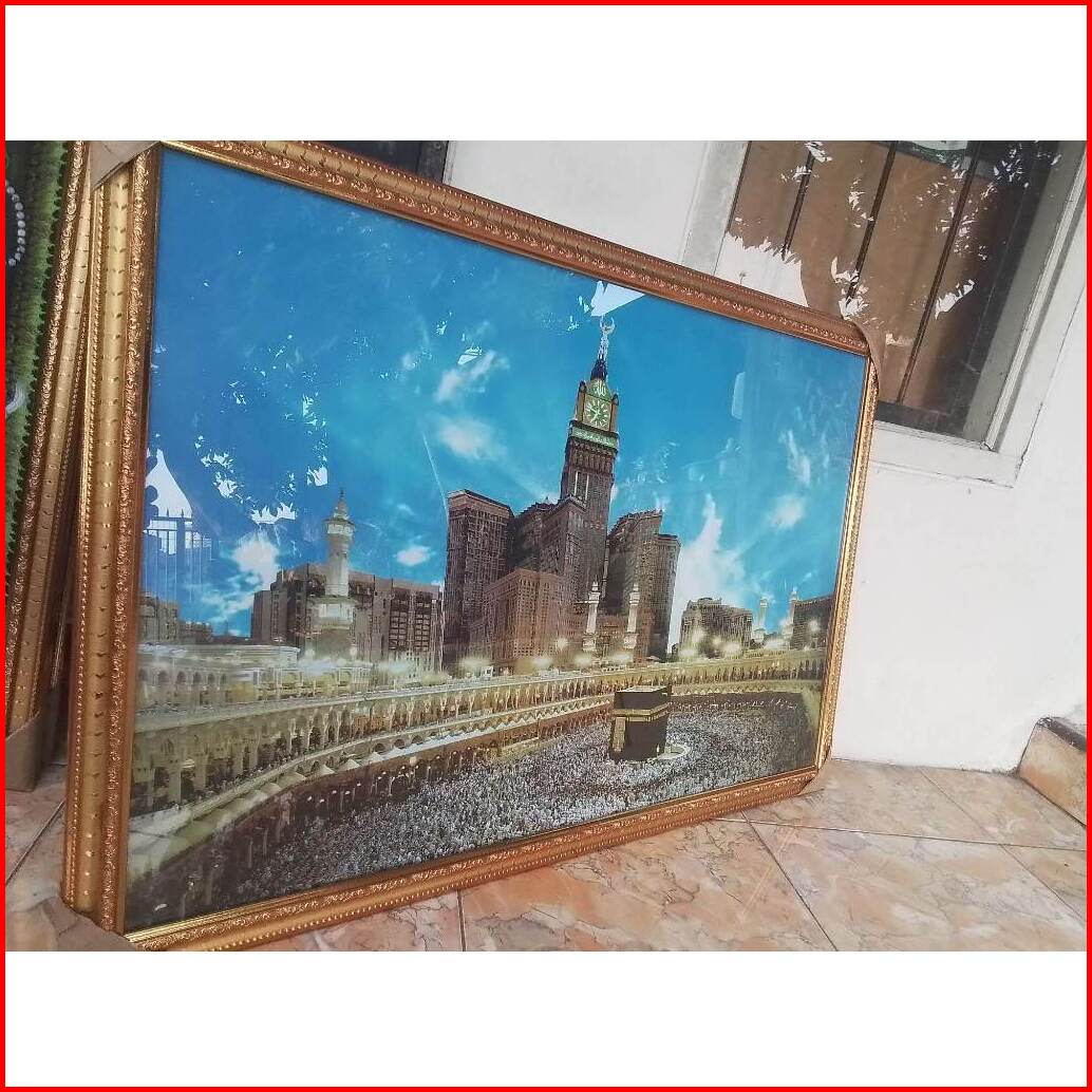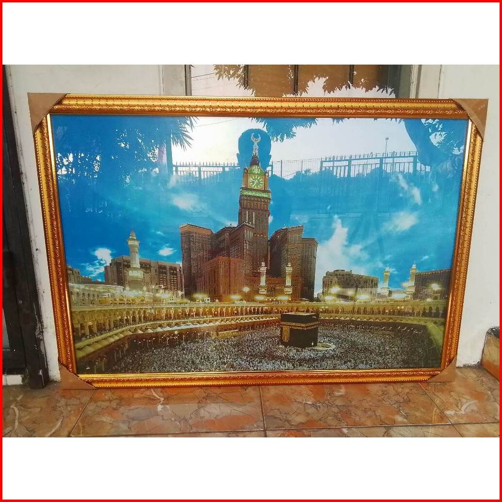 Hiasan Dinding Kaligrafi Ka Bah Kota Mekkah Besar 100x70cm Pajangan Ruang Tamu Gambar Kabah Jumbo
