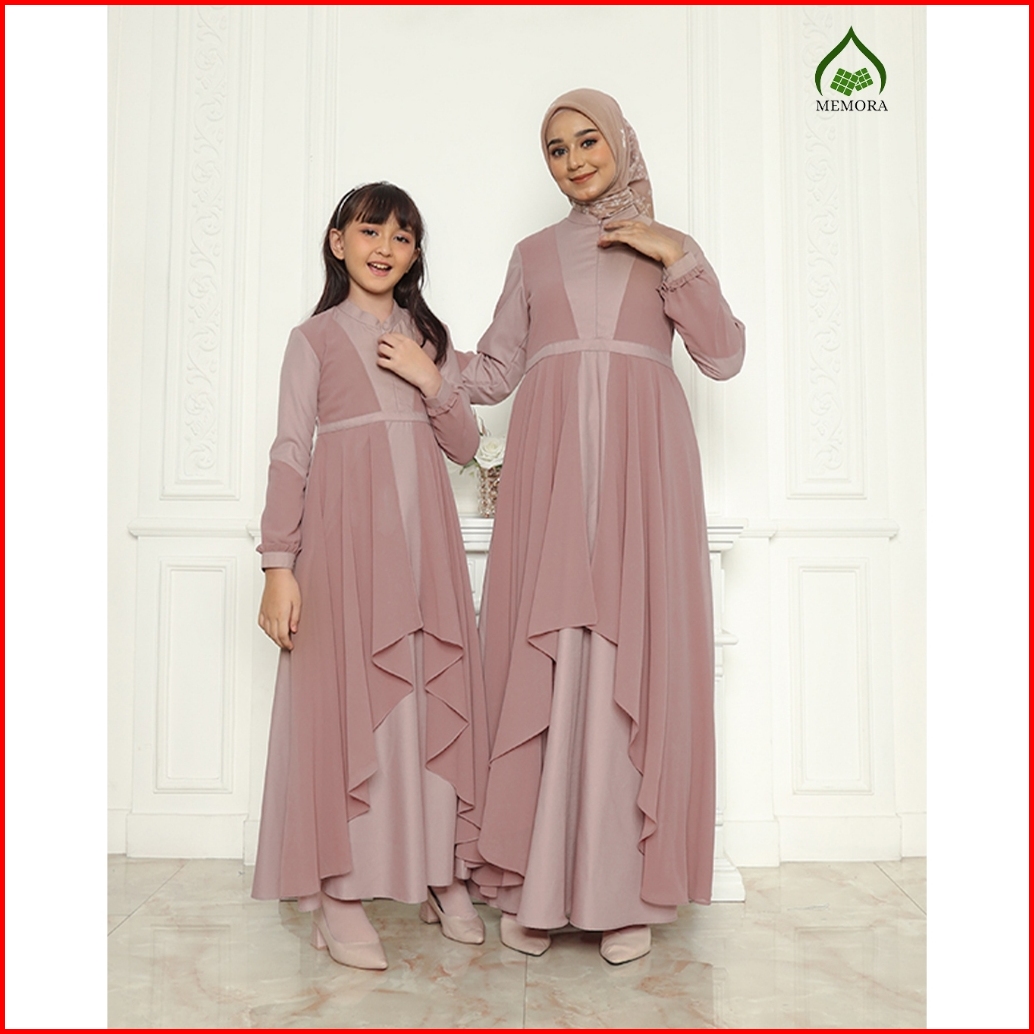 Sarimbit Keluarga 2025 Lebaran Series Natasha Coklat Susu By Memora - Gamis Couple Keluarga Lebaran 2025 - Baju Lebaran