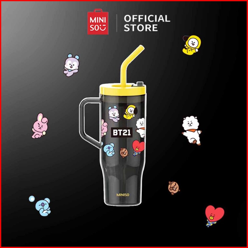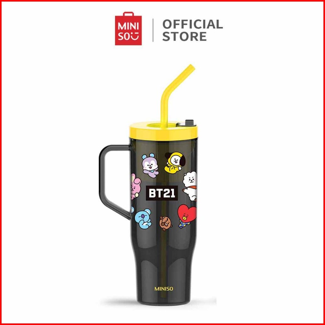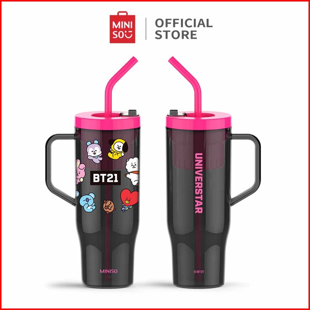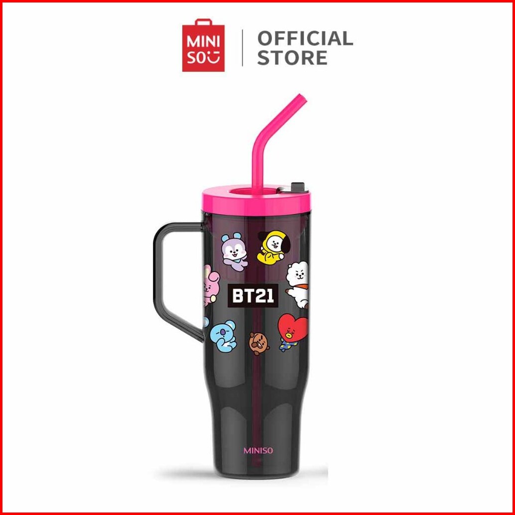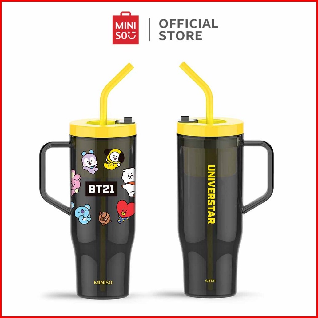 Miniso X Bt21 Collection Gelas Plastik Dengan Sedotan Kapasitas Super Besar Cangkir Meja Plastic Tumbler With Straw Boto